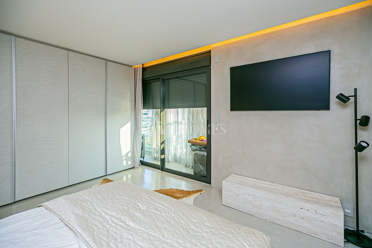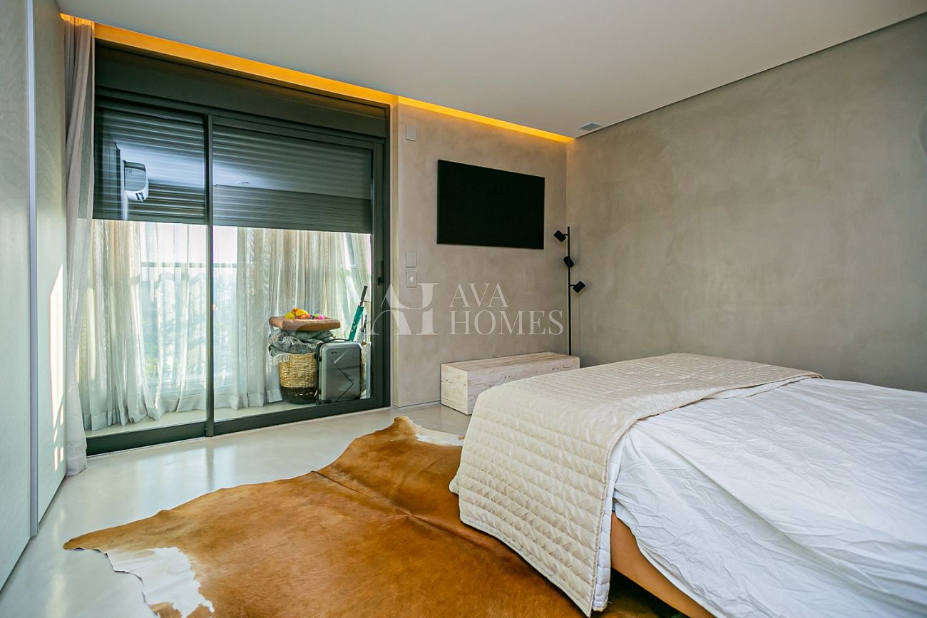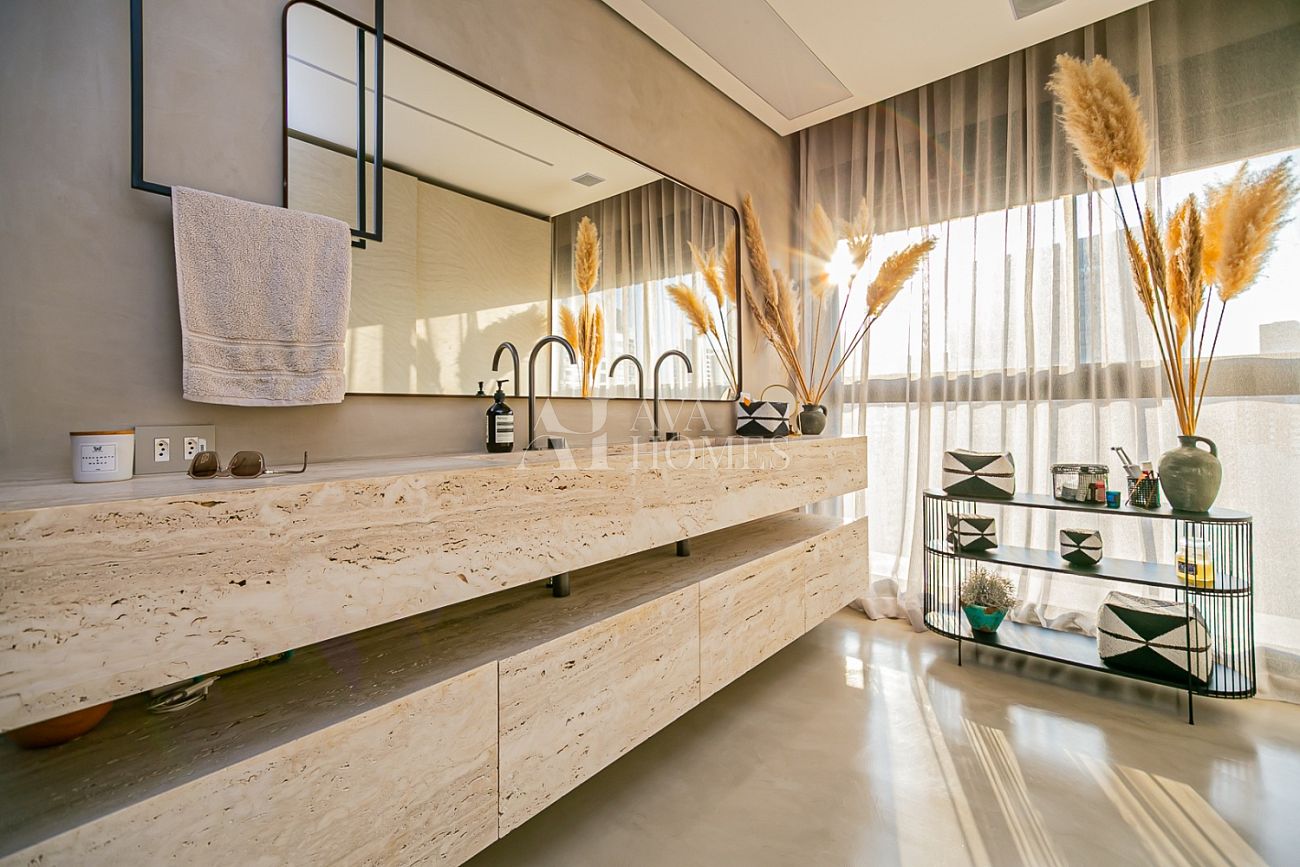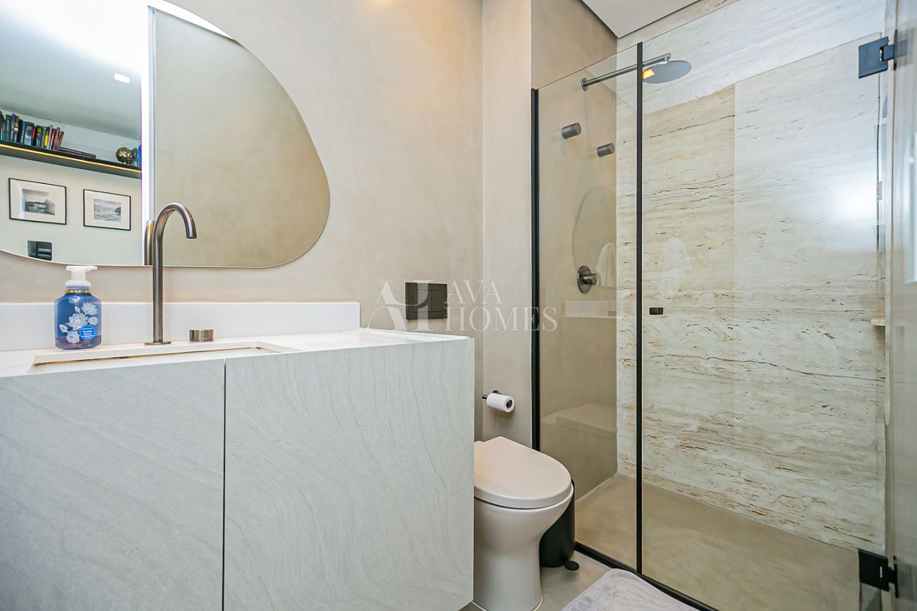 Na área íntima, duas suítes seguem a mesma lógica de sofisticação sem excesso.