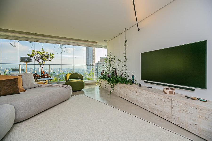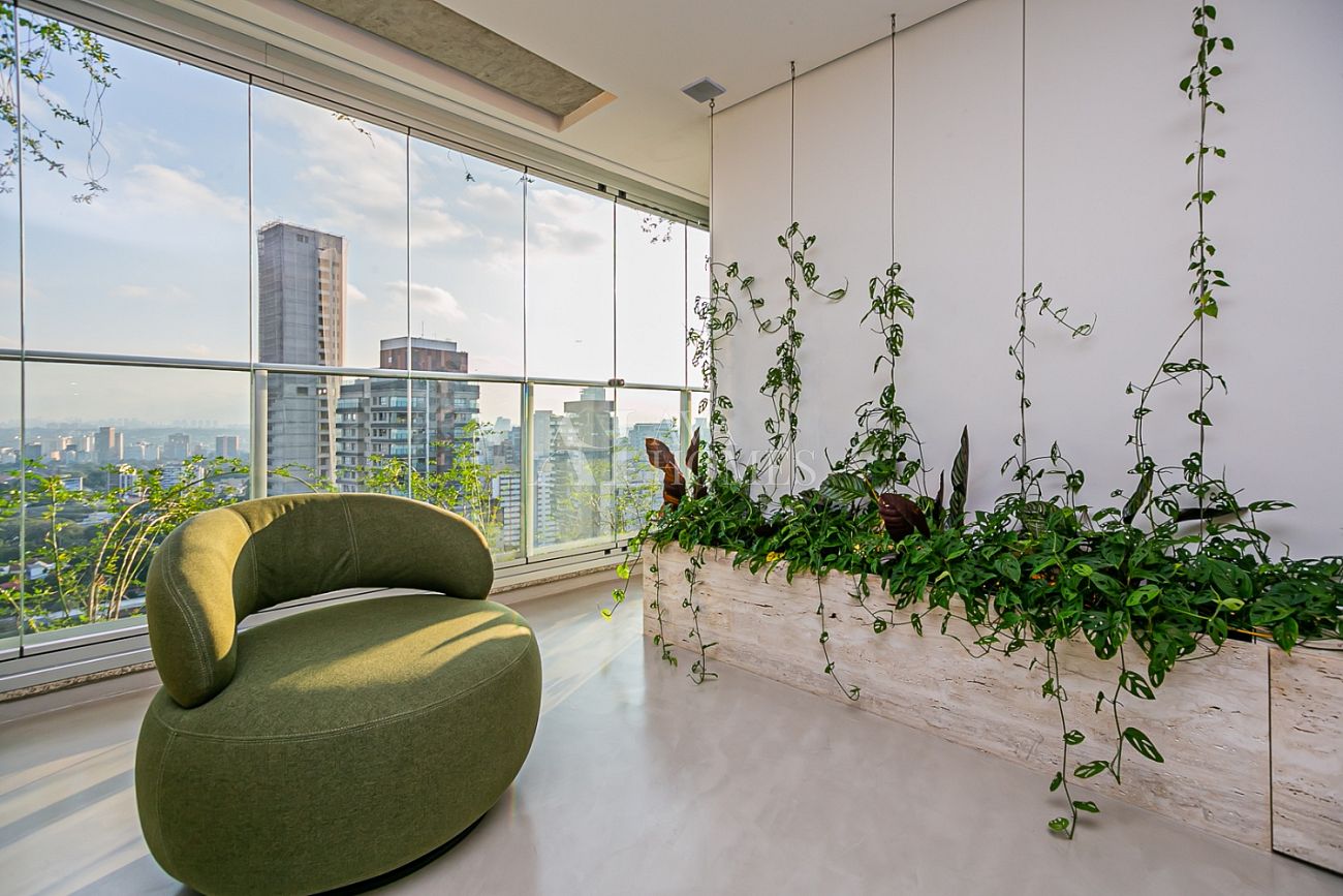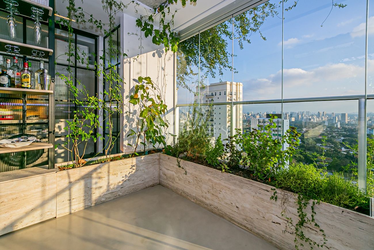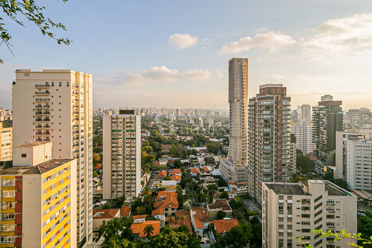 Em andar alto, com uma vista completamente livre e consolidada para o Jardim Europa, o apartamento entrega um pôr do sol fascinante, daqueles que silenciam a cidade e mudam o ritmo do dia.