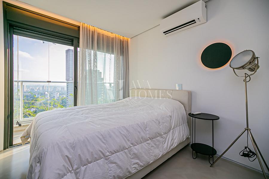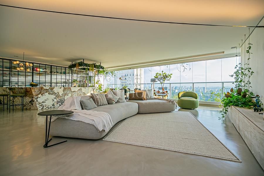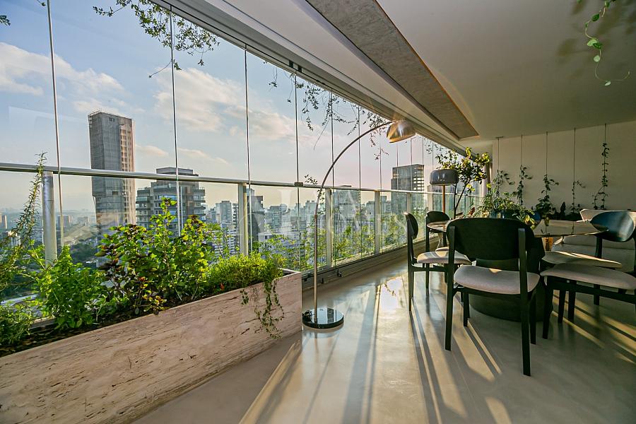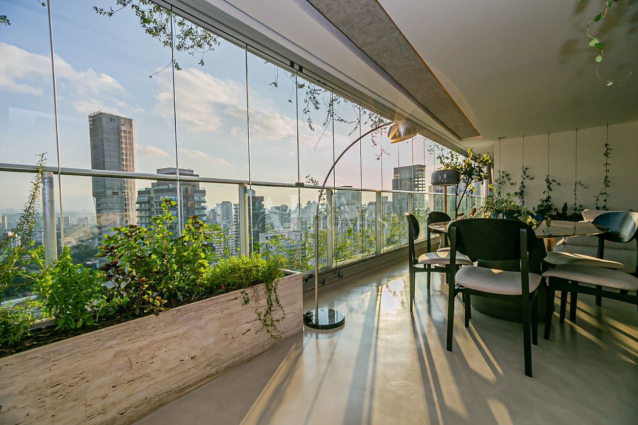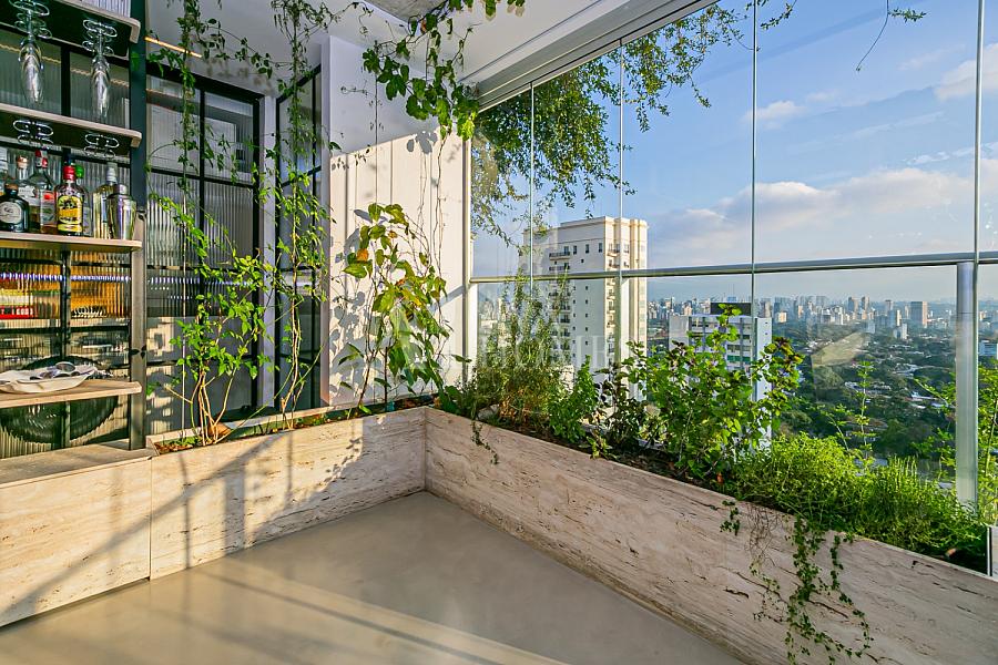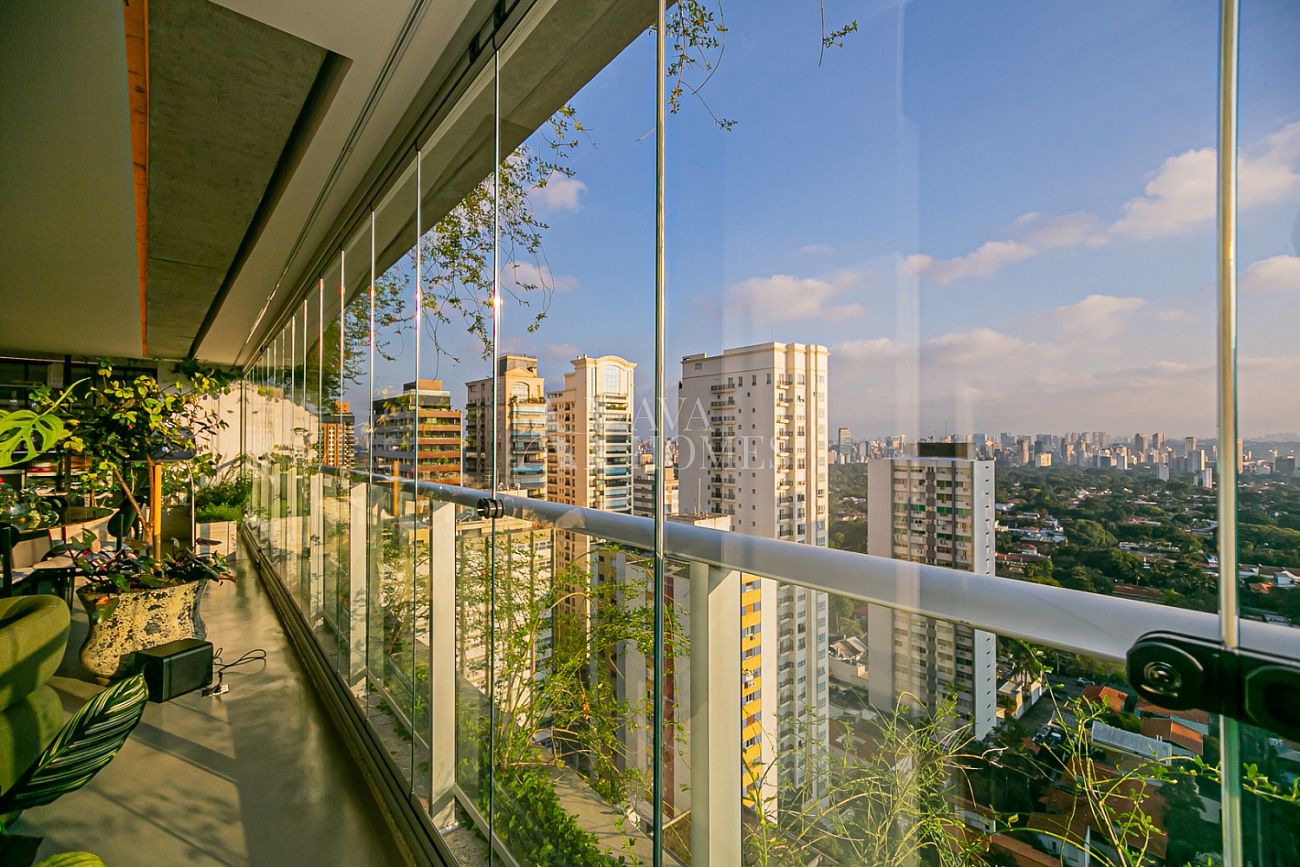 Em andar alto, com uma vista completamente livre e consolidada para o Jardim Europa, o apartamento entrega um pôr do sol fascinante, daqueles que silenciam a cidade e mudam o ritmo do dia.