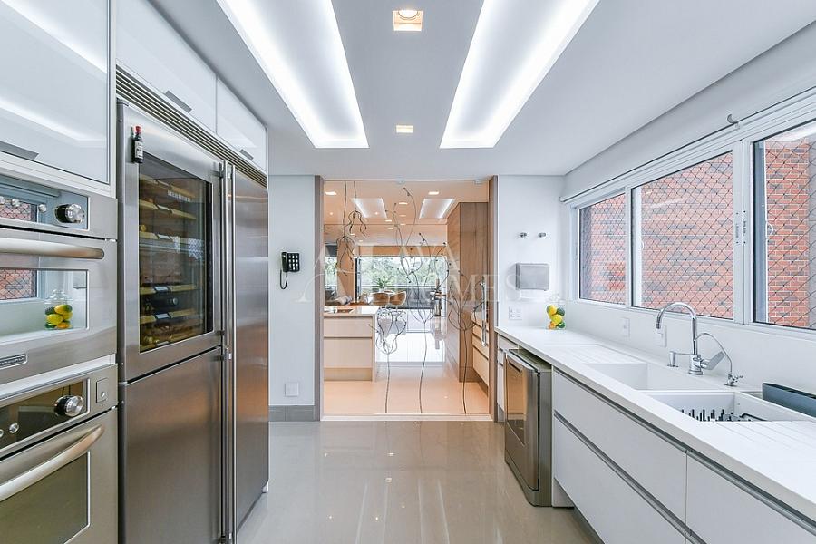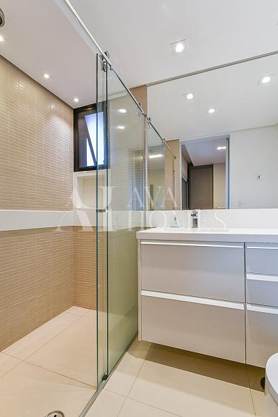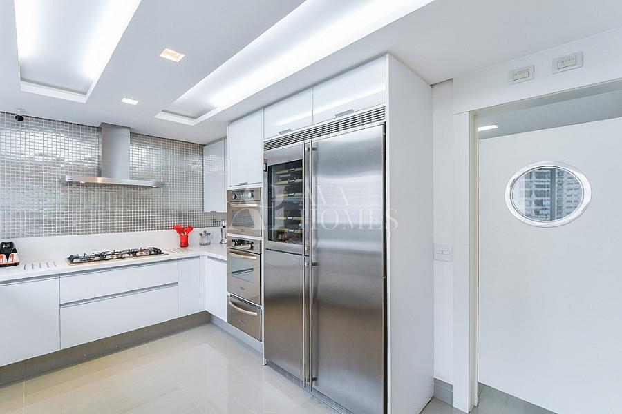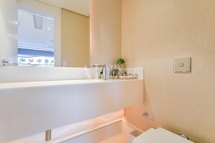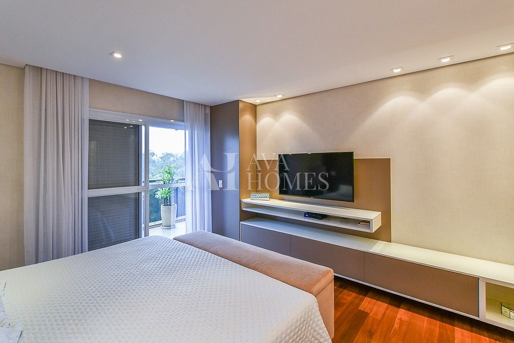 A planta original conta com 4 suítes, mas neste apartamento uma delas foi aberta para ampliar a sala, resultando em 3 suítes espaçosas. A suíte do casal é um verdadeiro destaque, com closet e banheiro duplo (Sr. e Sra.), oferecendo conforto e privacidade. Essa configuração pode ser facilmente revertida à planta original, caso desejado. Além disso, o imóvel possui escritório, lavabo, living integrado à varanda com vista permanente para a Praça de Milão, cozinha gourmet moderna com porta de correr, rouparia, lavanderia, despensa, dependência de funcionário, 3 vagas de garagem e depósito.