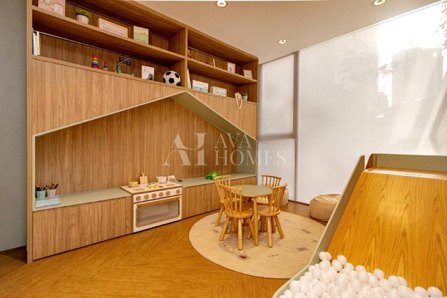 O condomínio conta com infraestrutura de lazer completa, incluindo brinquedoteca, deck, academia, pet place e piscina, além de um deck molhado.