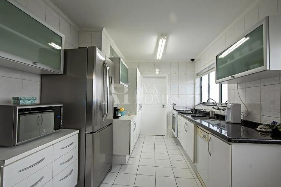A planta do imóvel possui uma distribuição inteligente, destacando-se as salas de estar e jantar, iluminadas por janelas do chão ao teto em toda a sua extensão. O apartamento também dispõe de um escritório, cozinha planejada, área de serviço e dependência de funcionários. Na área íntima, encontram-se três espaçosos dormitórios, sendo uma suíte com closet, e dois dormitórios que compartilham um banheiro.