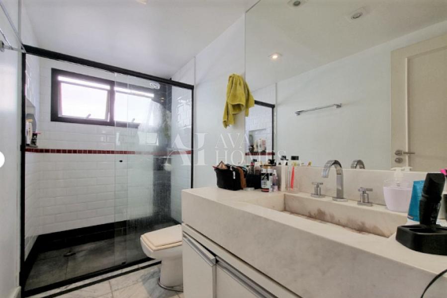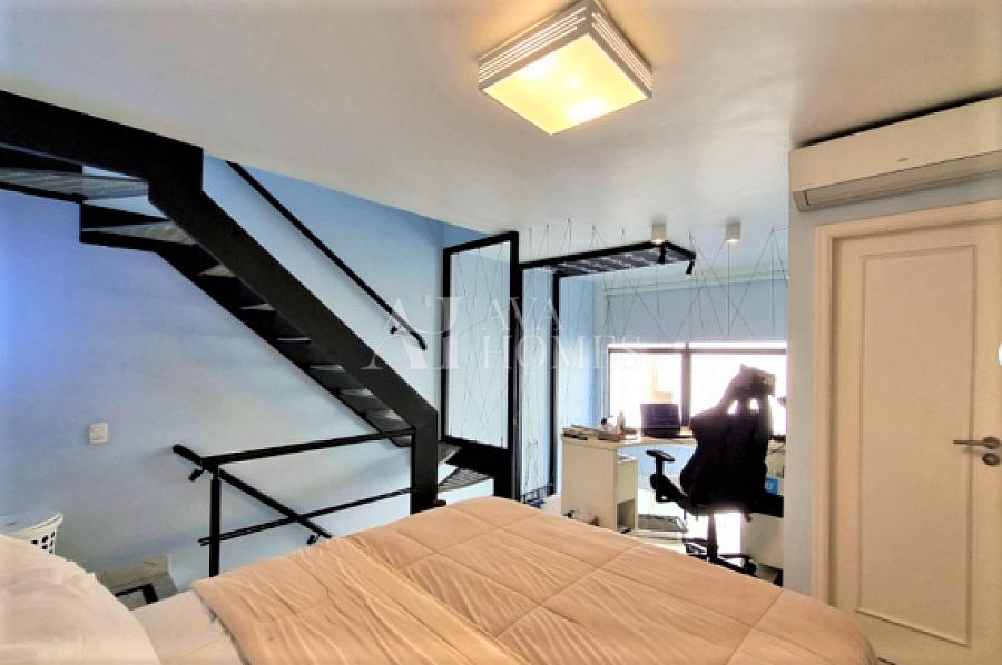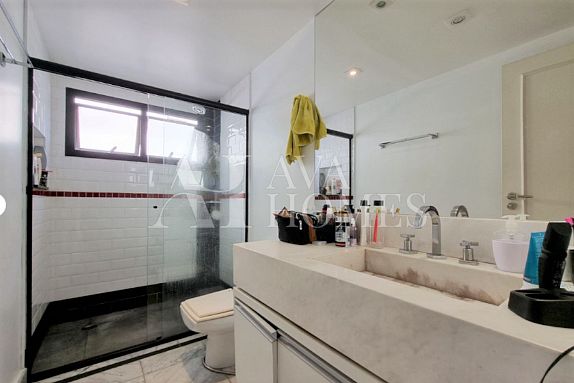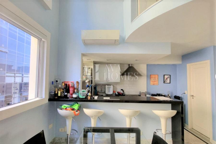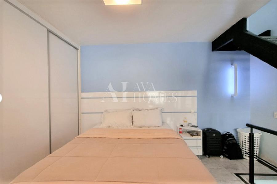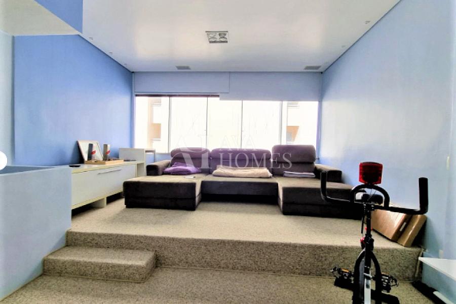 Apartamento triplex à venda no bairro Itaim Bibi, com uma distribuição funcional em três andares e localização privilegiada. O andar de entrada conta com uma sala de estar, lavabo, cozinha americana completa e uma prática área de serviço. No segundo andar encontramos uma suíte aconchegante para os moradores, enquanto o terceiro oferece uma sala mais ampla de televisão.