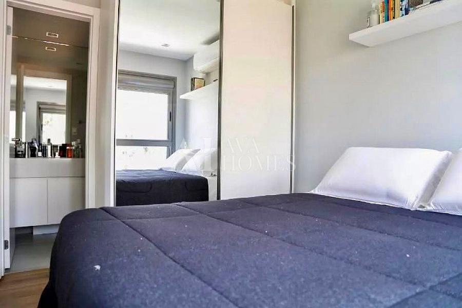 Com 71 m² muito bem resolvidos, o projeto privilegia conforto, estética e funcionalidade. Originalmente com dois dormitórios, hoje conta com um integrado à sala, criando uma área social ampla, elegante e extremamente acolhedora, com a possibilidade de reversão para quem precisar.