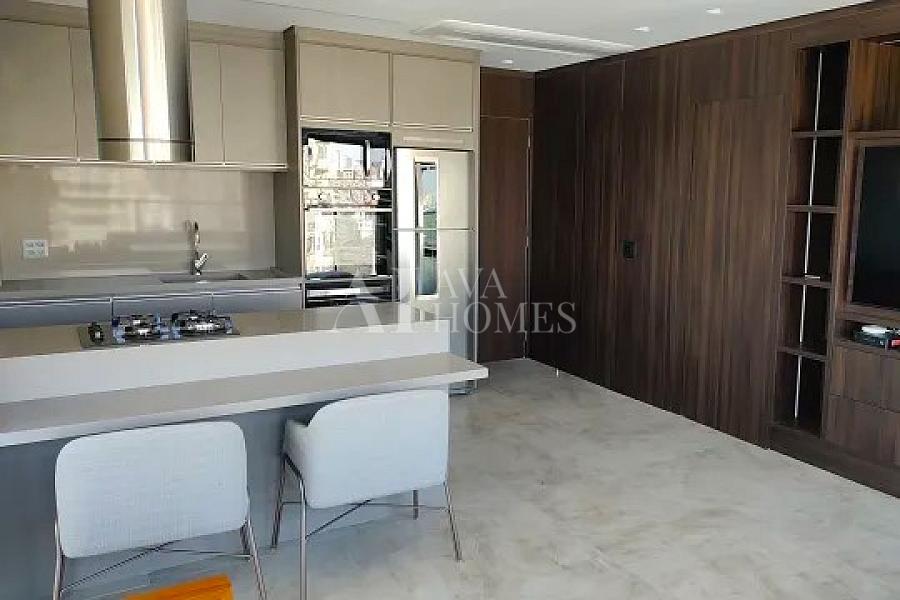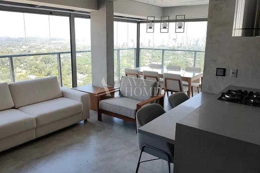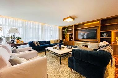 Apartamento Penthouse em uma localização elevada da cidade, no andar mais alto e com a melhor vista do edifício, oferecendo um panorama do skyline e da exuberante área verde dos jardins. Totalmente adquirido, renovado, decorado e equipado para fins de investimento, tudo novo e pronto para morar. A planta foi cuidadosamente projetada com uma ampla sala que incorpora as sacadas, utilizando um envidraçamento articulado frontal e lateral, proporcionando uma sensação de espaço sem igual. A sala, com dois ambientes (estar e jantar), integra-se harmoniosamente à cozinha, que possui uma ilha central e está completamente equipada. A automação residencial pode ser controlada de forma presencial por voz, internet ou através de um aplicativo de celular, oferecendo controle remoto sobre os sistemas de iluminação (Projeto e equipamentos Puntoluce), ar condicionado, cortinas e fechadura eletrônica.