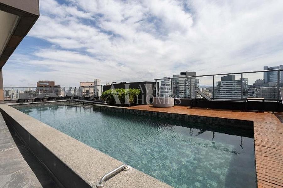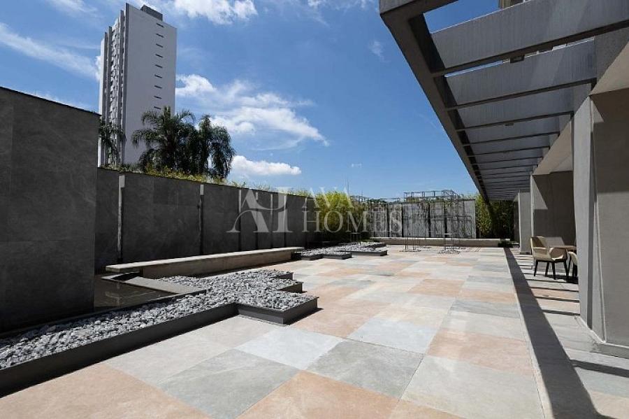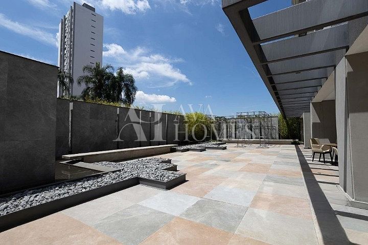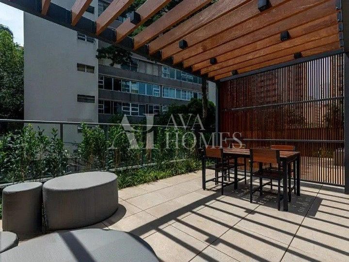 As áreas de lazer incluem uma piscina e academia no terraço, com uma vista panorâmica da cidade e uma decoração sofisticada e moderna. O primeiro piso oferece uma ampla área comum, totalmente decorada, mobiliada e equipada, com salão de festas, lounge bar e área de churrasqueira externa. Há também um espaço kids com jardim, gazebo e solário em jardim elevado. Além de um bicicletário com bicicletas disponíveis para locação e uma vaga específica para lavagem de veículos. É raro encontrar uma área comum com tantas opções de lazer e amenidades nos Jardins.