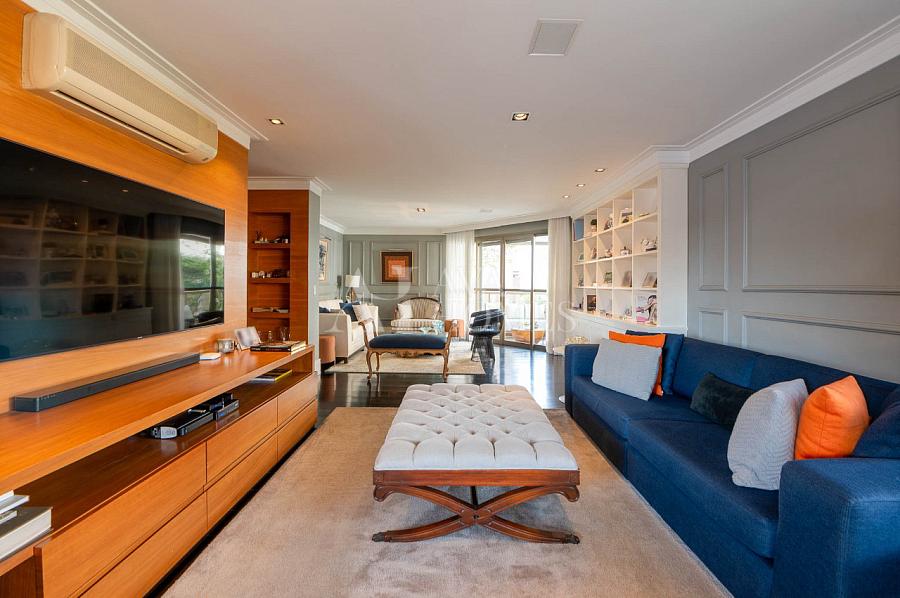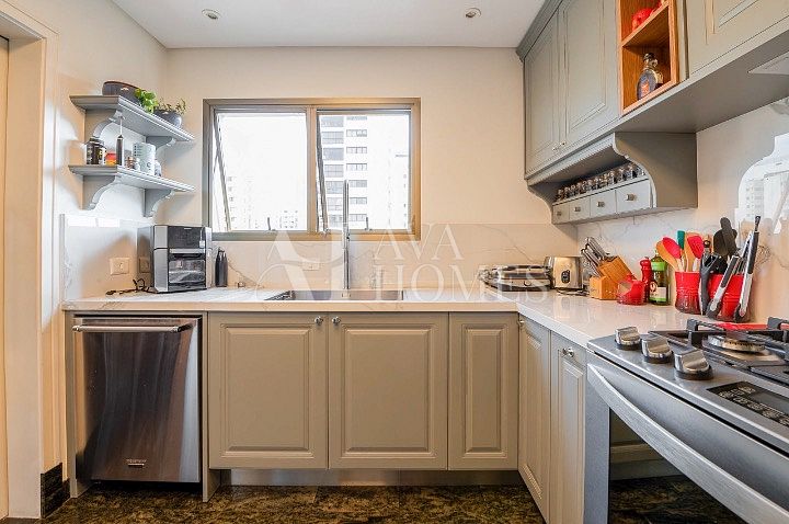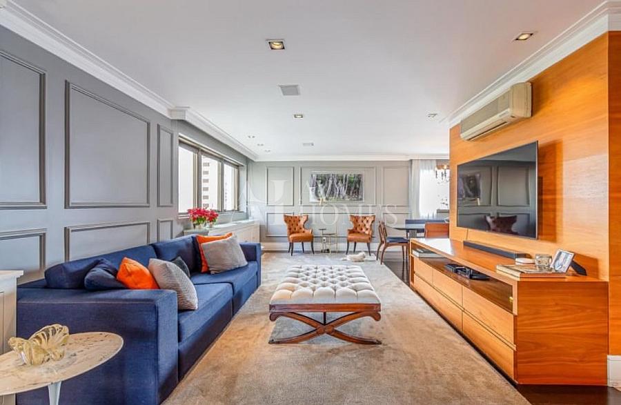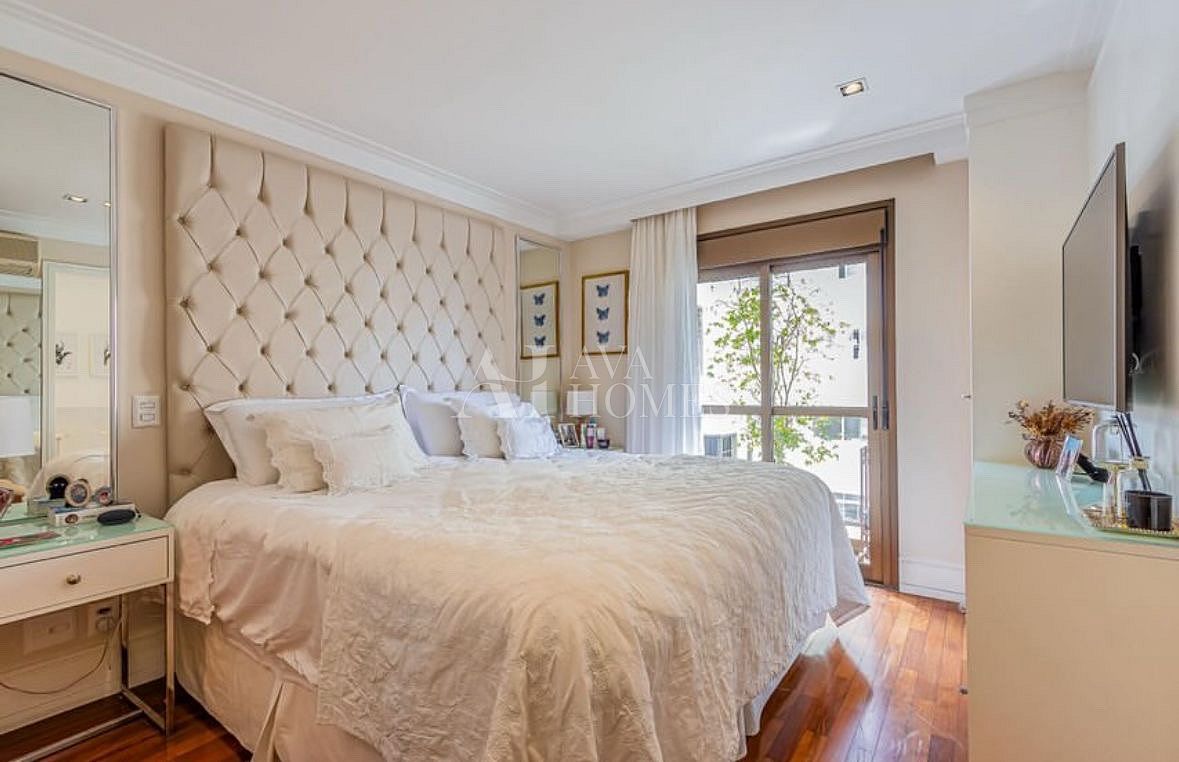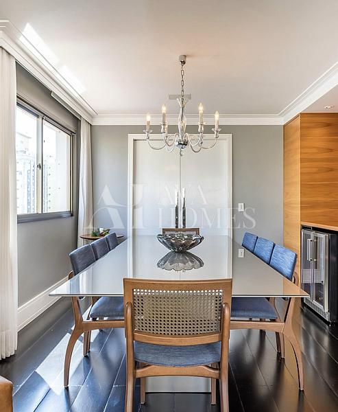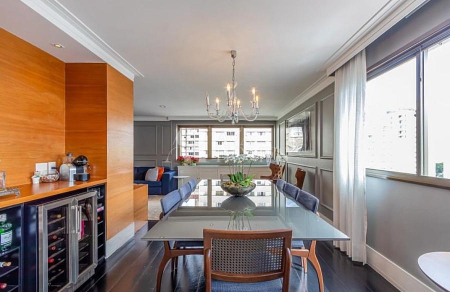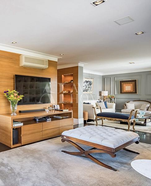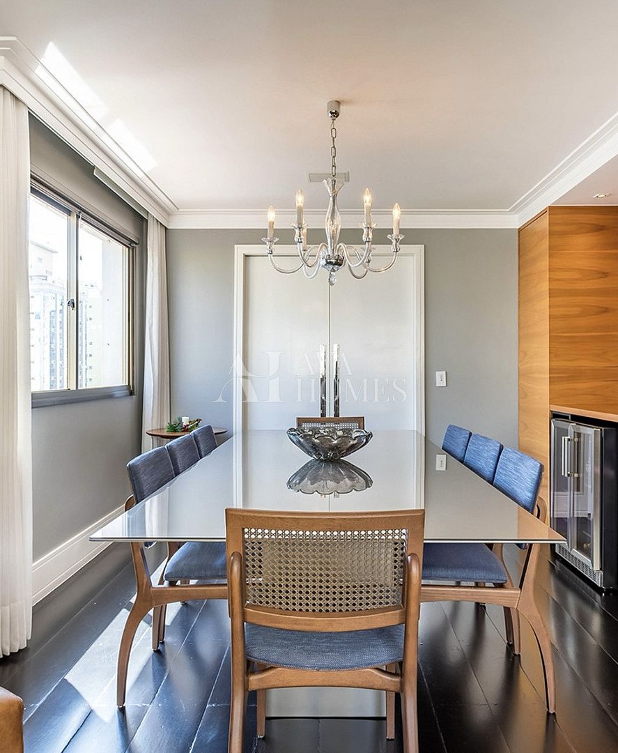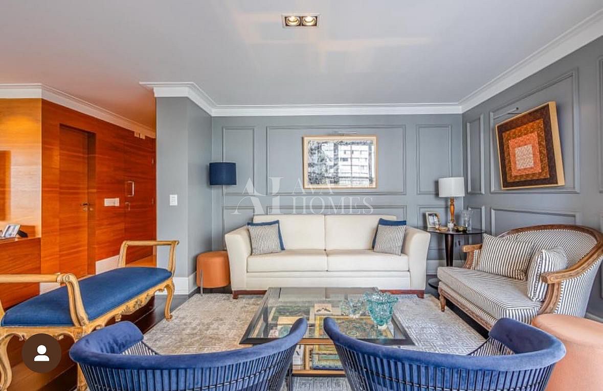 Esse apartamento vai te conquistar logo de cara com seu charme atemporal. Totalmente reformado e mobiliado, ele combina design clássico, boiseries delicadas, piso de madeira ebanizada e uma paleta neutra que transmite aconchego e sofisticação.