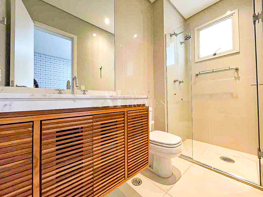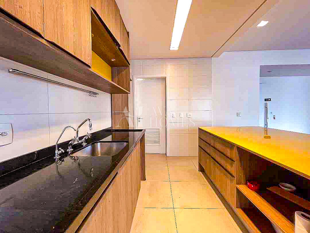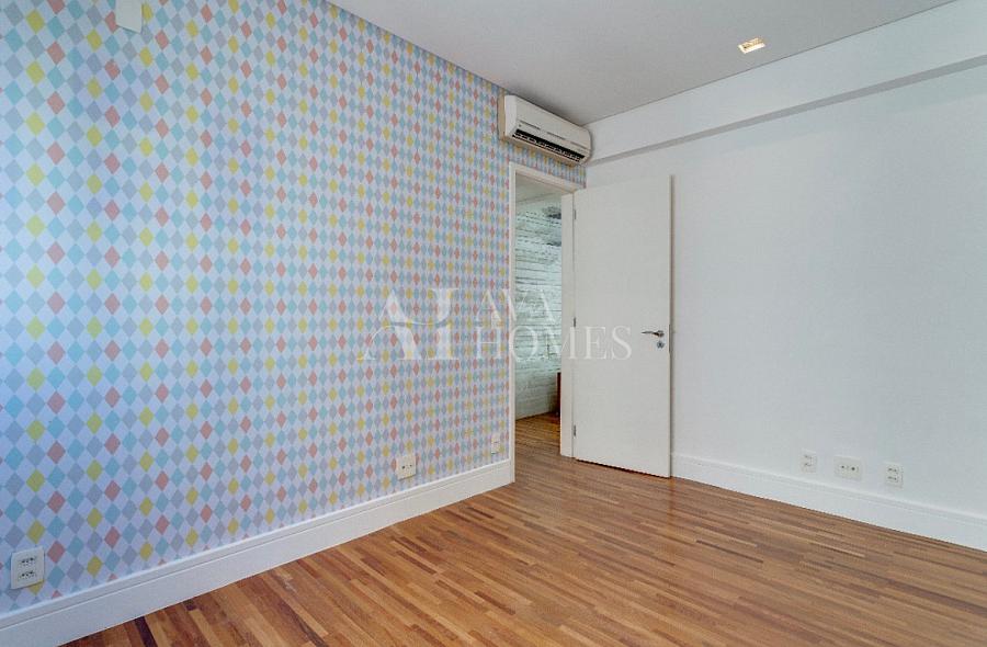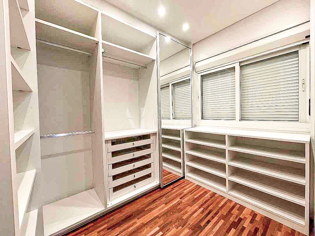 Piso em madeira em todos os ambientes. Na área íntima, dispõe de duas suítes, sendo a suíte máster ampliada e com walk in closet. Ambientes climatizados quente e frio, depósito privativo amplo e três vagas fixas.