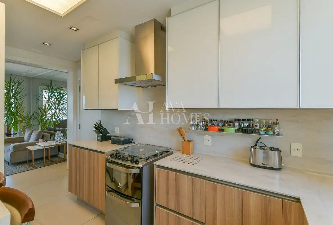 Acabamentos de Qualidade: Marcenaria Ornare, sistema de som, persianas elétricas, pisos em porcelanato e madeira, bancadas da cozinha e área de serviço em Corian.