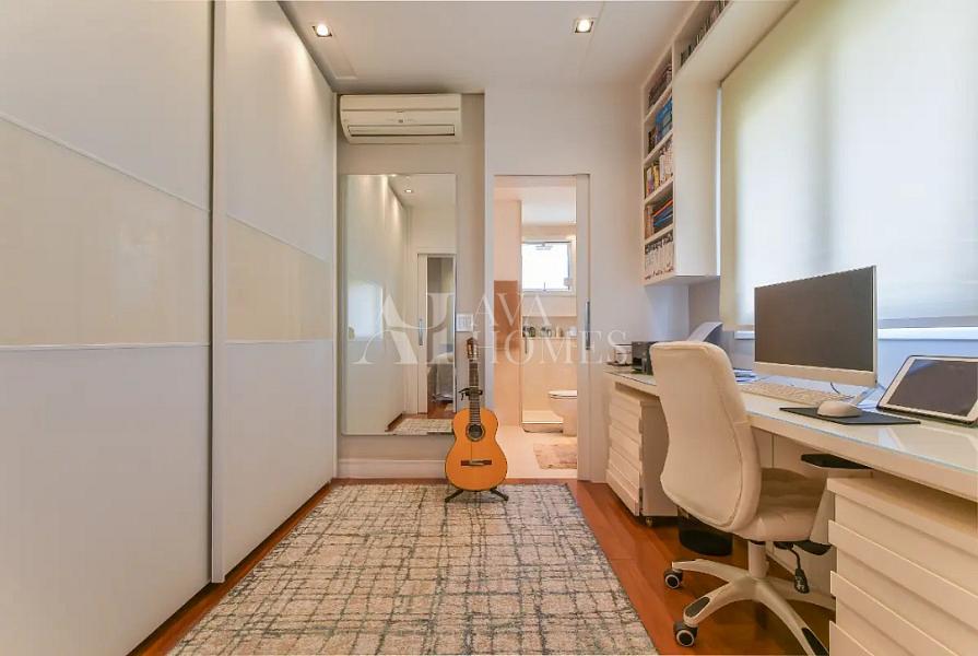 Suíte Master dos Sonhos: A suíte principal, resultado da união de duas suítes, oferece um refúgio particular com 2 banheiros para o casal e um espaçoso walking closet, além de uma área de home office integrada.