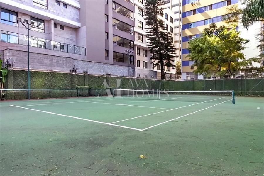 O condomínio oferece lazer completo, com infraestrutura impecável que inclui academia equipada, piscina coberta, quadra de tênis, salão de festas, salão de jogos, playground e sauna. A unidade conta ainda com central térmica para aquecimento dos chuveiros e ar-condicionado em todos os quartos, closets e na sala de estar.