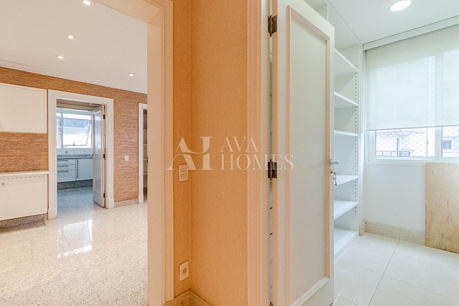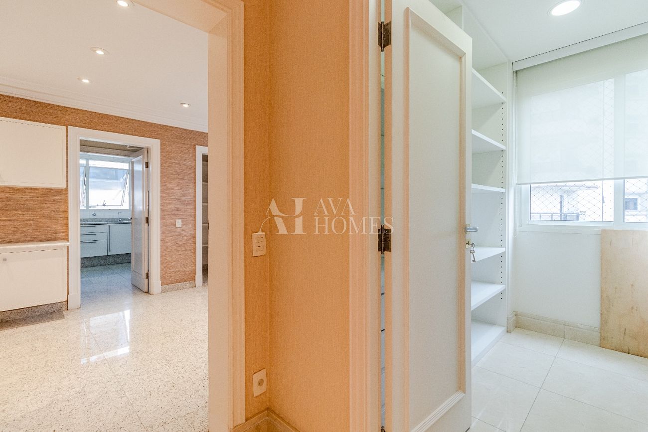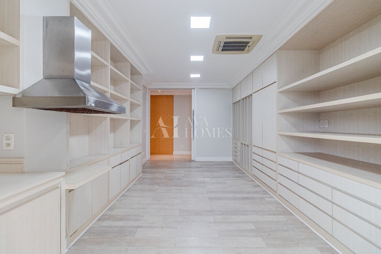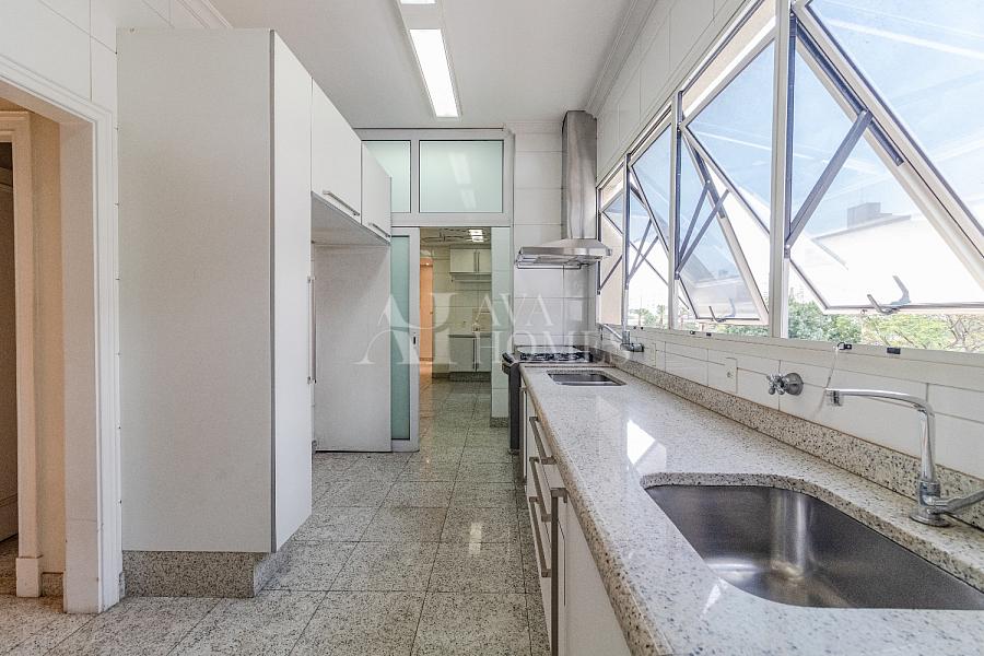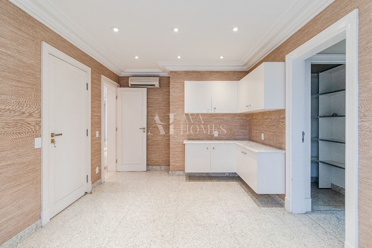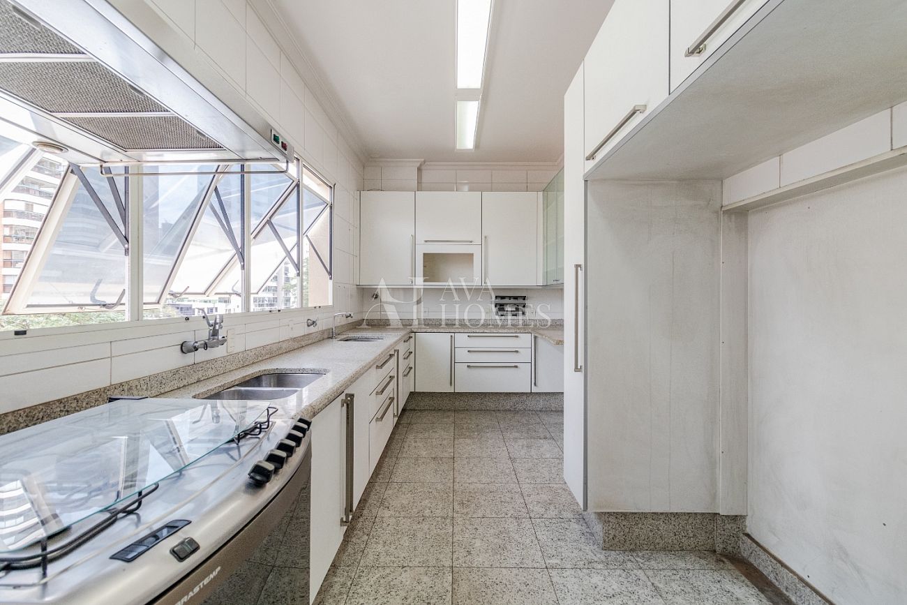 Cozinha, copa, área de serviço e dependência completa para funcionários, além de 6 vagas de garagem.