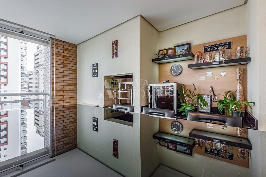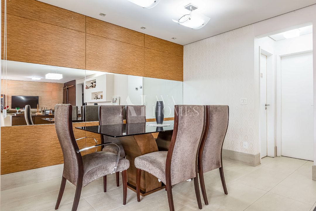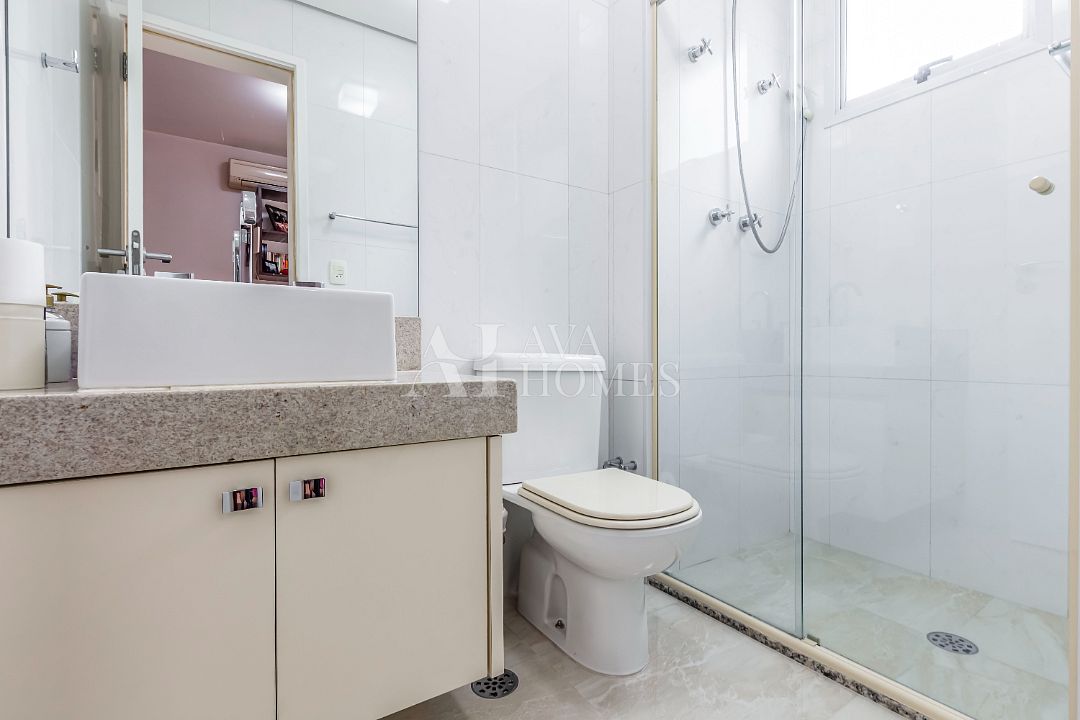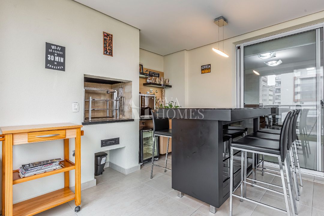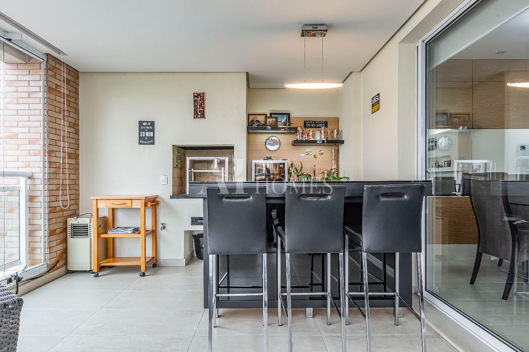 São 162m², conta com 3 suítes, terraço gourmet com churrasqueira a carvão, dependência completa de funcionária e 3 vagas.