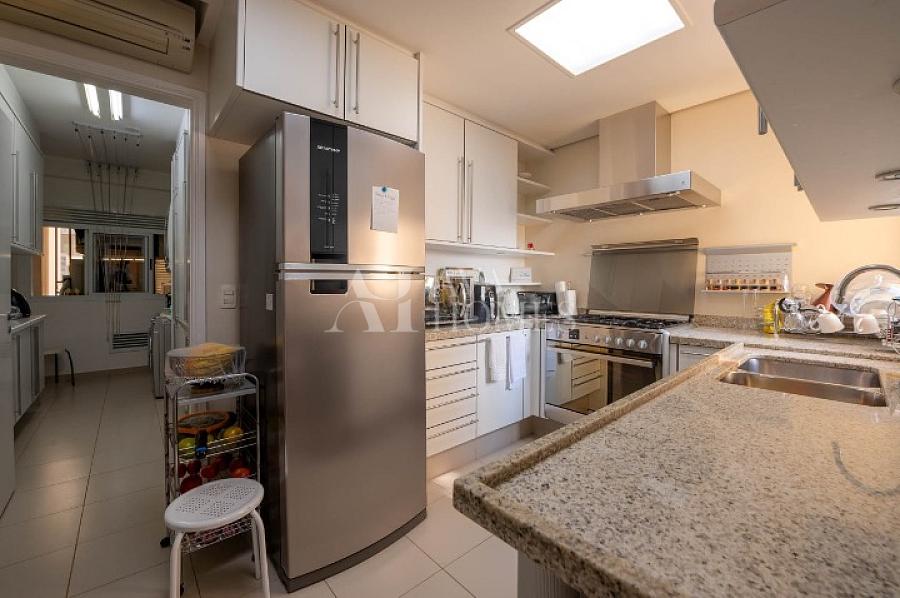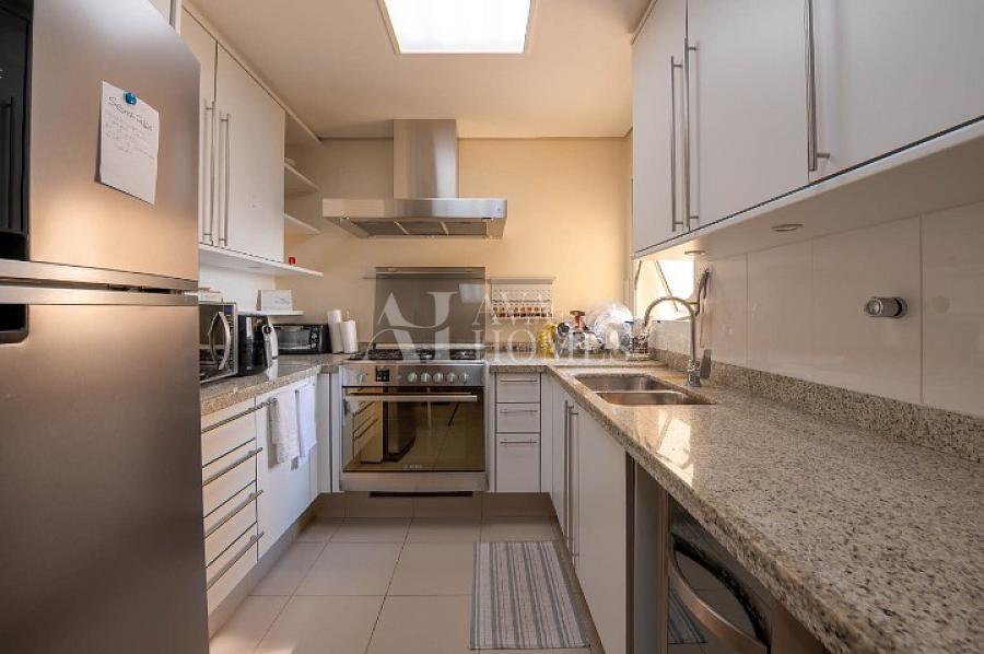 A cozinha planejada é espaçosa e prática, complementada por uma área de serviço com dependência de empregada. As duas suítes confortáveis, incluindo uma suíte master, têm armários embutidos, e o imóvel dispõe de diferenciais como hidromassagem, escritório, lavabo e ar-condicionado.