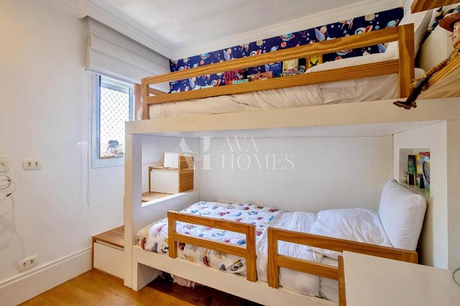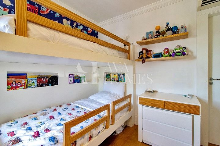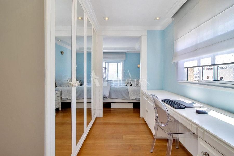 Está com 2 suítes, sendo a master com closet e home office, todas com armários planejados e ar condicionado. A planta original previa 3 suítes, e o banheiro da terceira suíte foi transformado em sapateira, mas as tubulações foram mantidas, o que facilita a reversão para a configuração original, caso seja necessário.