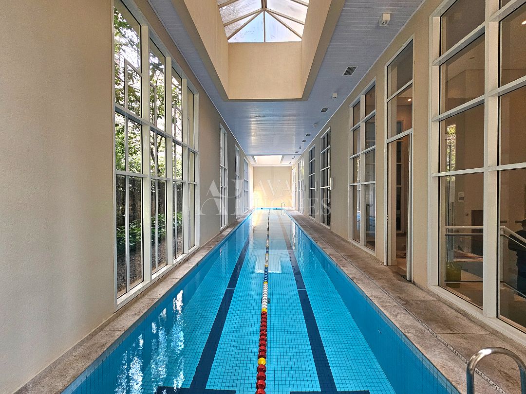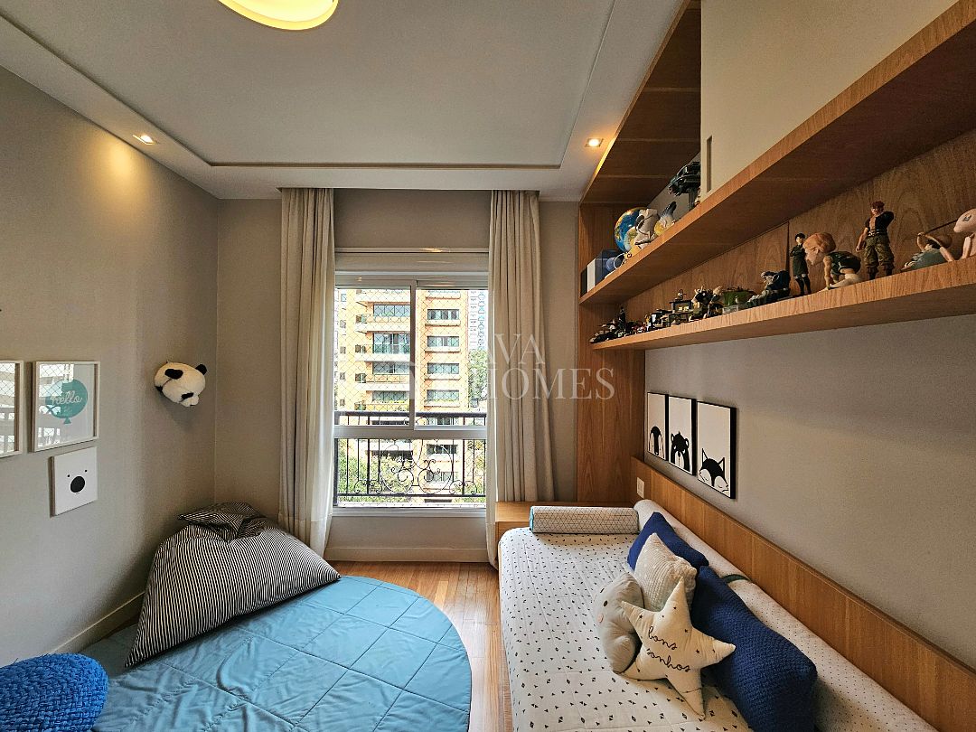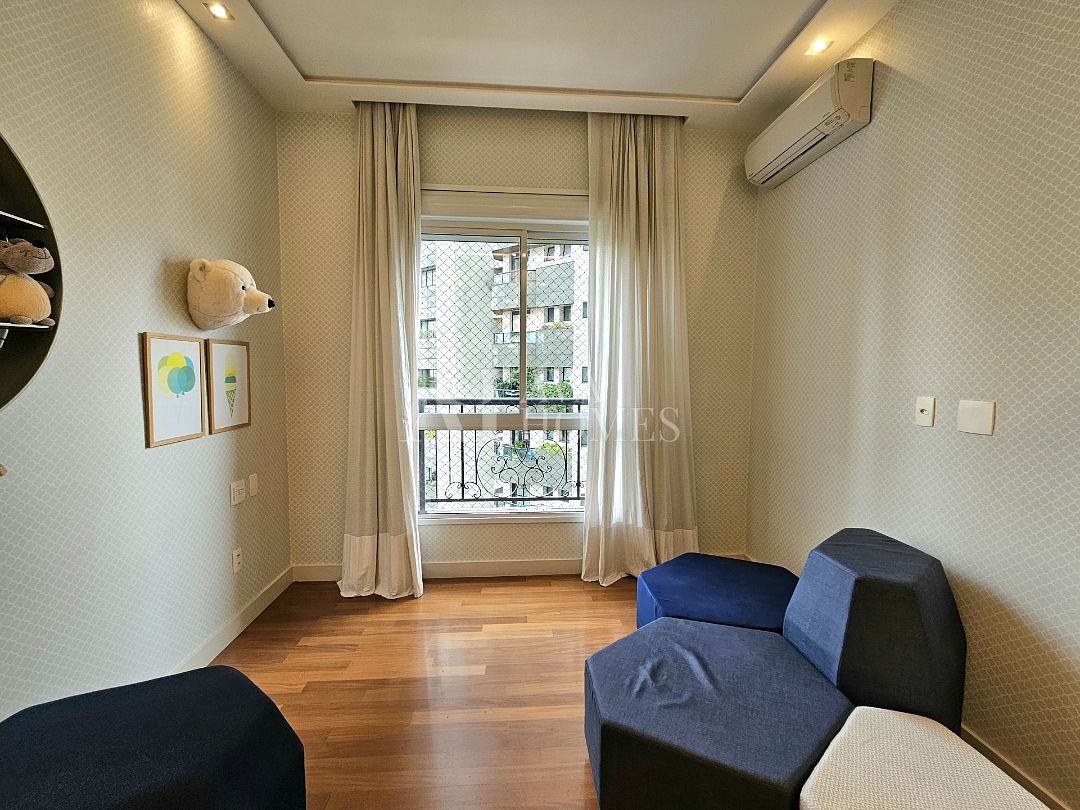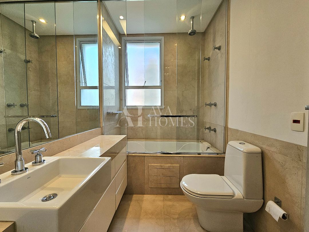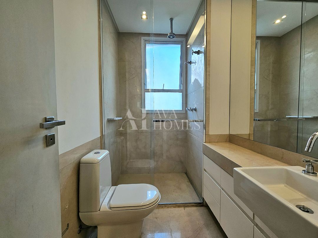 Na ala íntima, quatro suítes com piso em madeira e marcenaria Augusto Moreno, reconhecida pela qualidade dos materiais e acabamentos. Banheiros com aquecimento de piso, desembaçador de espelho e revestidos em mármore, mantendo a linguagem do projeto.