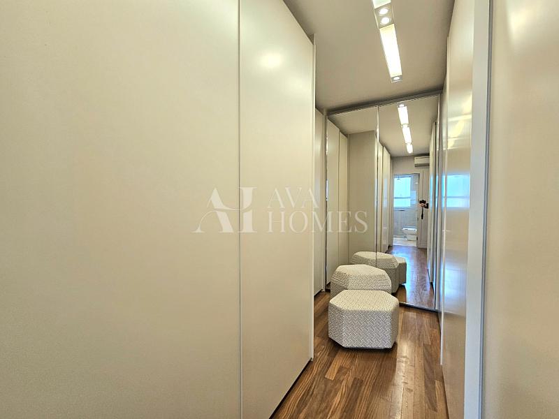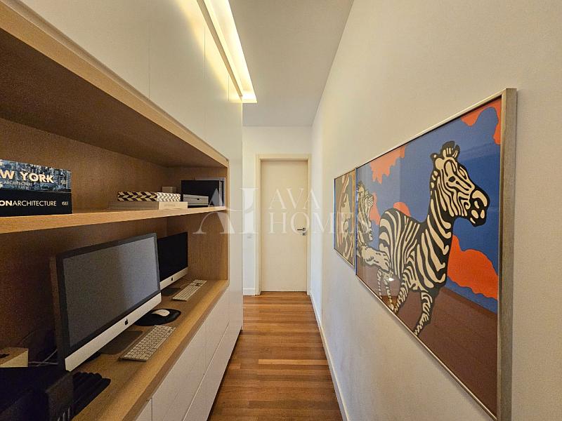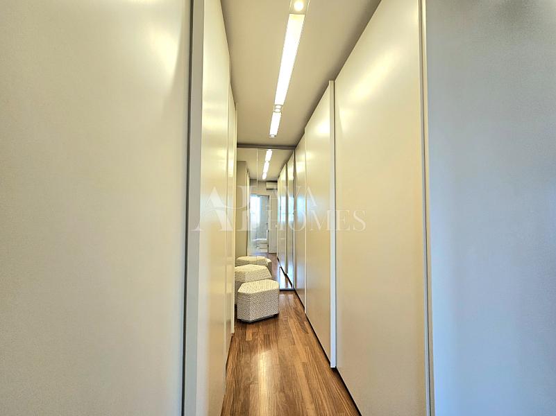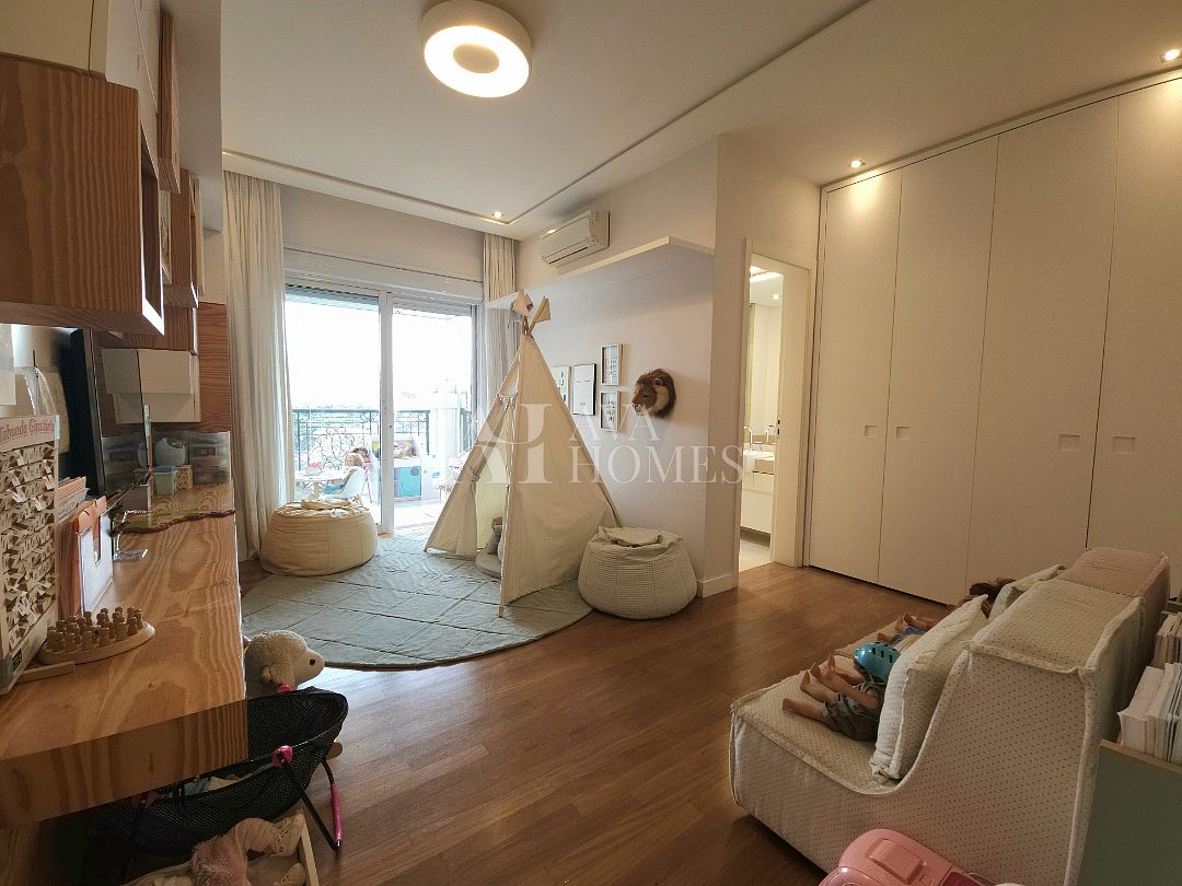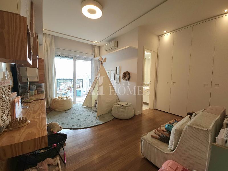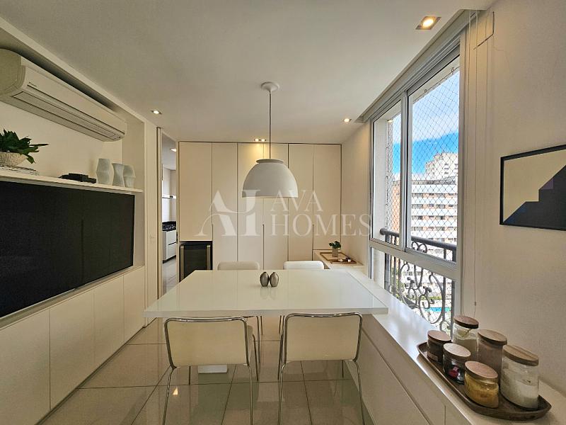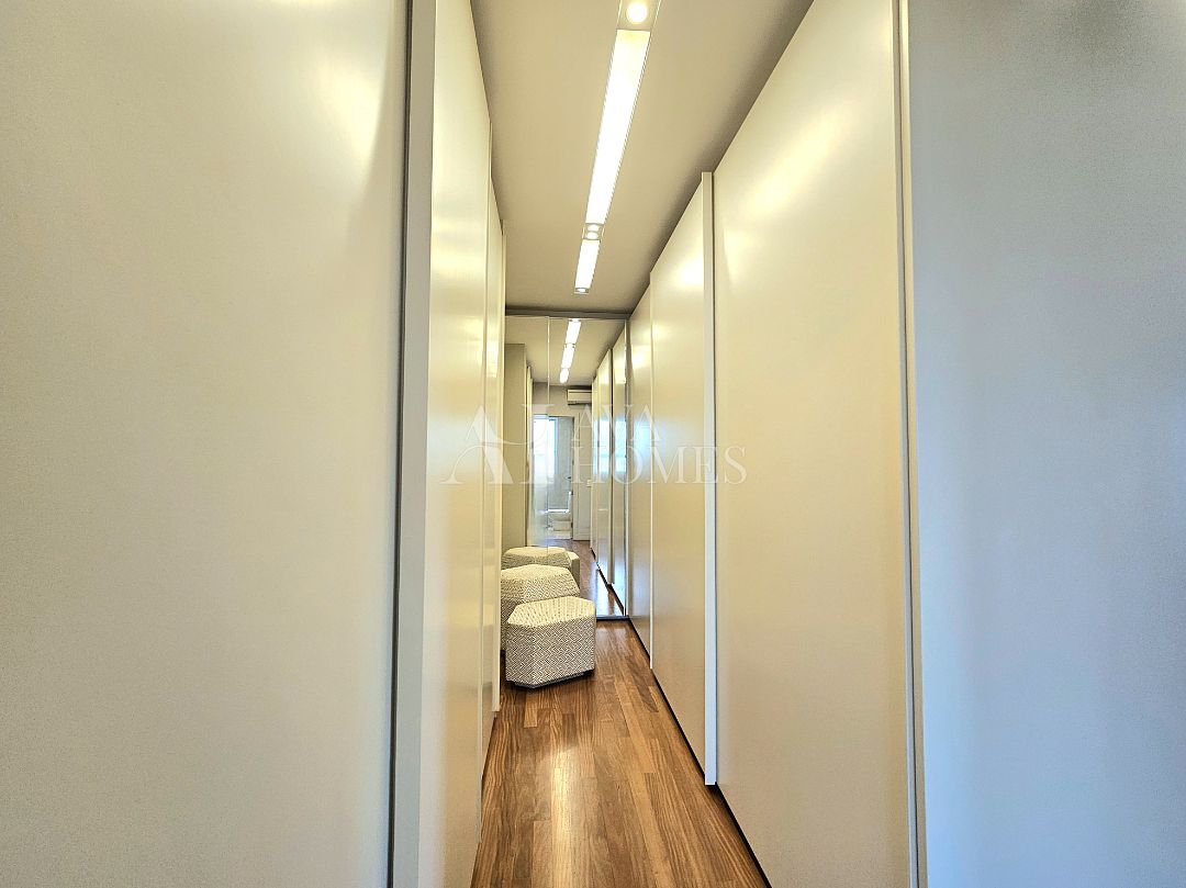 Na ala íntima, quatro suítes com piso em madeira e marcenaria Augusto Moreno, reconhecida pela qualidade dos materiais e acabamentos. Banheiros com aquecimento de piso, desembaçador de espelho e revestidos em mármore, mantendo a linguagem do projeto.