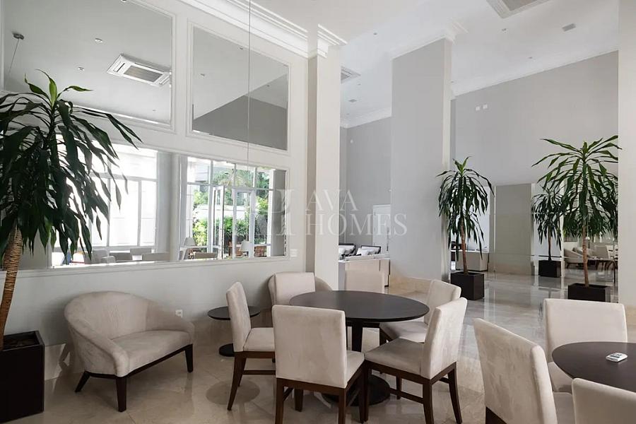 O edifício tem fachada neoclássica, está fora de rota e oferece estrutura de lazer com: piscina coberta com raia, academia, sala de massagem e salão de festas. São 05 vagas sendo uma vaga tipo box fechada e um depósito privativo.