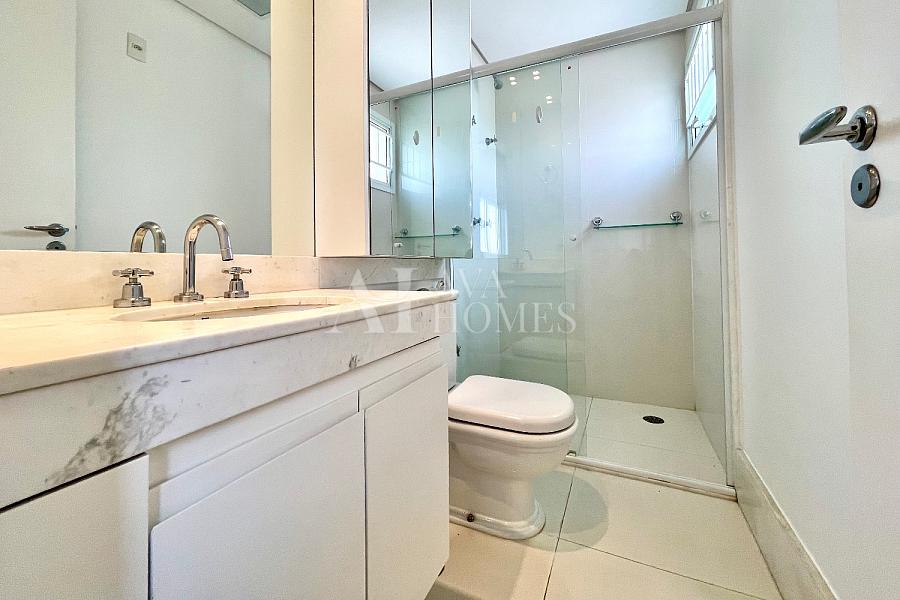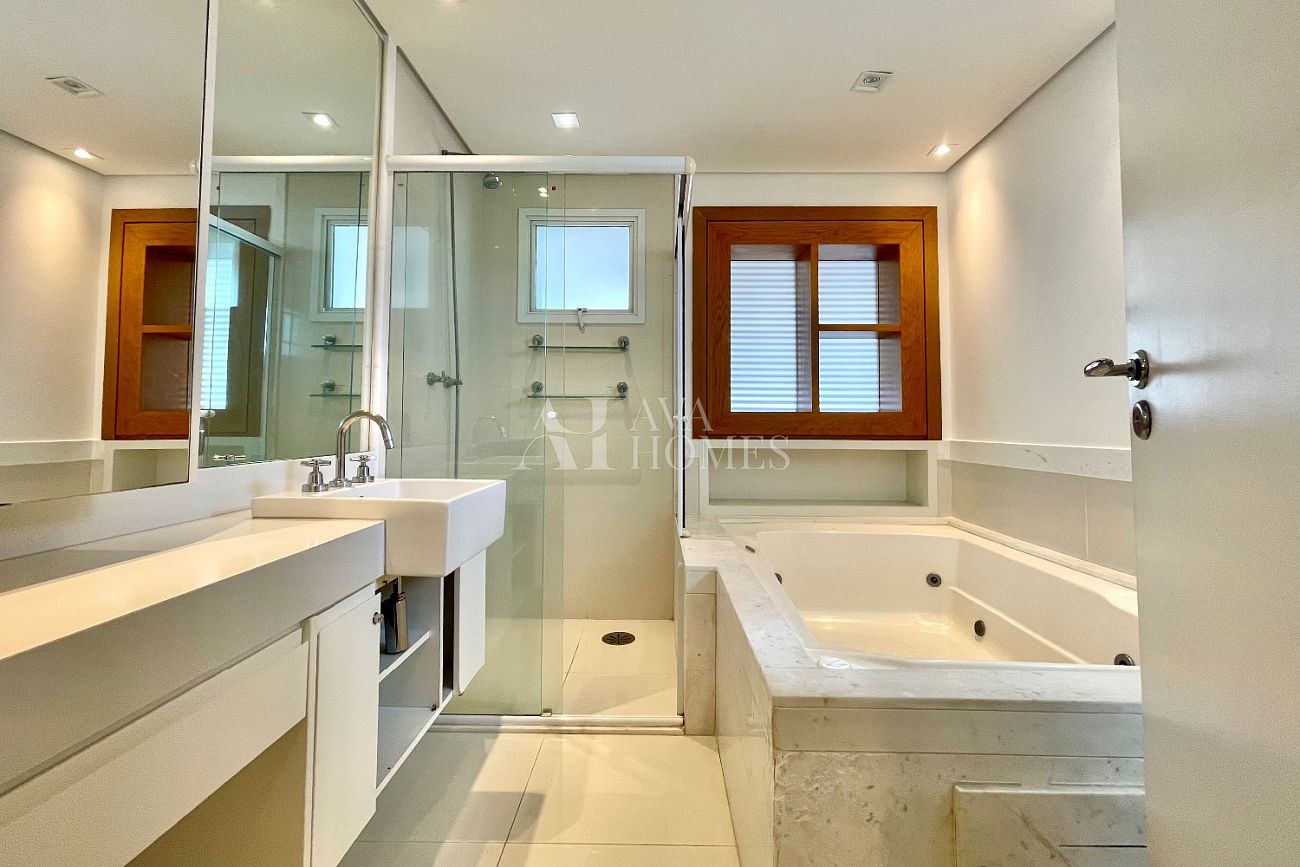 Conta com 4 suítes amplas, incluindo uma suíte master de tirar o fôlego, com dois walk-in closets, banheiro espaçoso com banheira, duas cubas e dois chuveiros ? um verdadeiro refúgio dentro de casa.