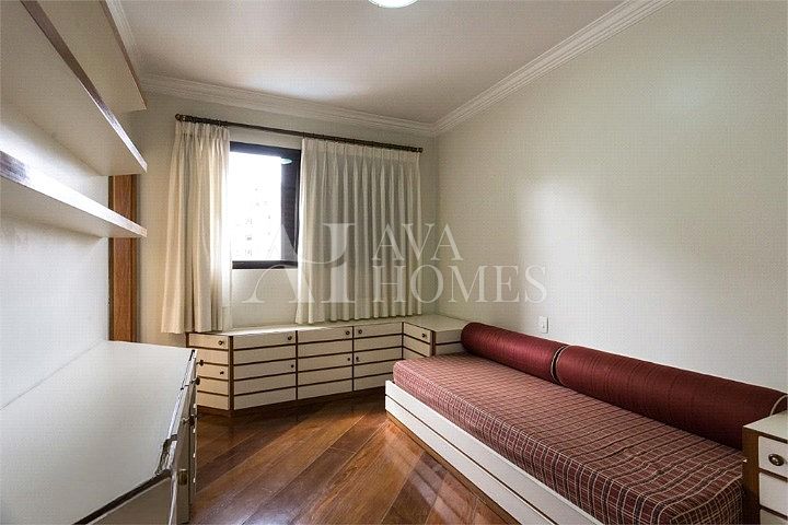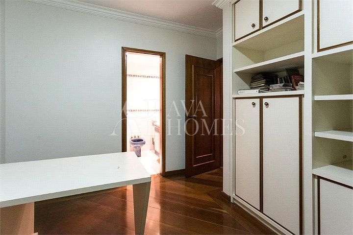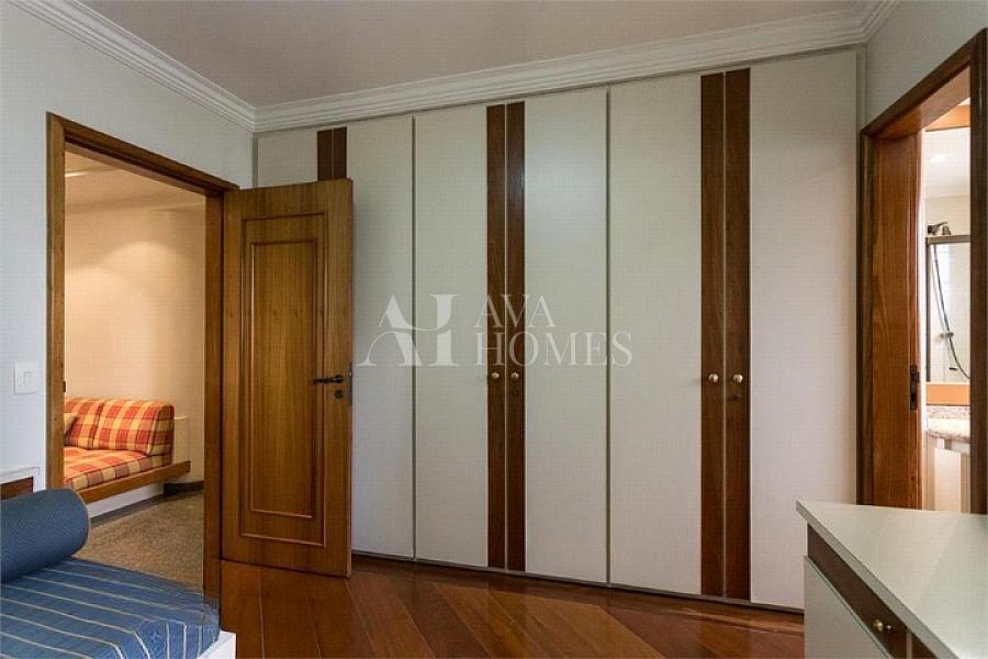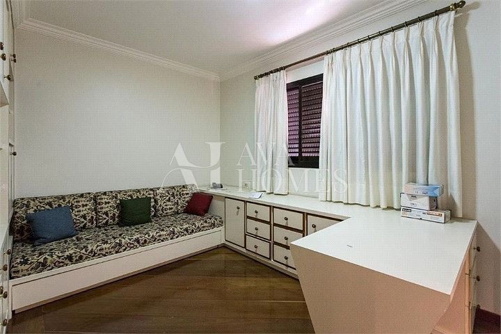 Apartamento à venda em Moema com 228 m², com 4 suítes, sendo uma delas com hidromassagem e closet. A ampla sala integra-se a uma varanda, além de contar com lavabo, cozinha, área de serviço com dependência de empregada e 4 vagas de garagem. O condomínio oferece uma completa estrutura de lazer, incluindo piscina, churrasqueira, salão de festas, salão de jogos, playground, quadra poliesportiva e jardim.
