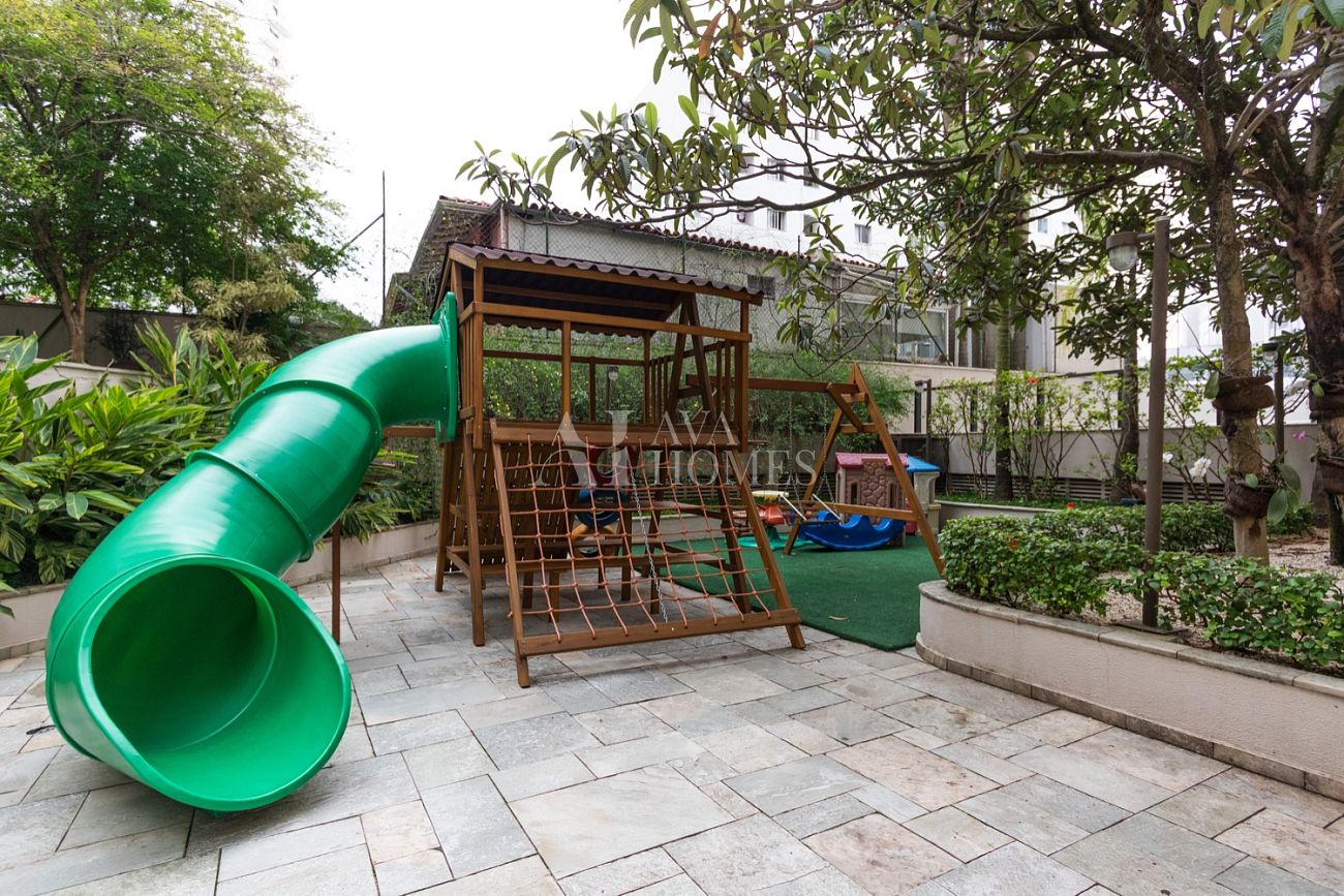 Com 102 m² de área útil e 181 m² de área total, este imóvel oferece três quartos, sendo uma suíte, e duas vagas de garagem isoladas. Localizado em um condomínio extremamente bem cuidado, com uma excelente equipe de zeladoria e funcionários, o apartamento possui uma varanda com visão ampla, sala de jantar e estar, lavabo, banheiro social, quarto e banheiro de empregada. A área de lazer é completa, incluindo piscina, salão de festas, salão de ginástica e parquinho infantil. Além disso, a localização é privilegiada: próximo ao Parque Ibirapuera, aos renomados restaurantes Le Manjue e Pecorino, e ao lado do Hospital São Luiz. Não perca essa oportunidade!