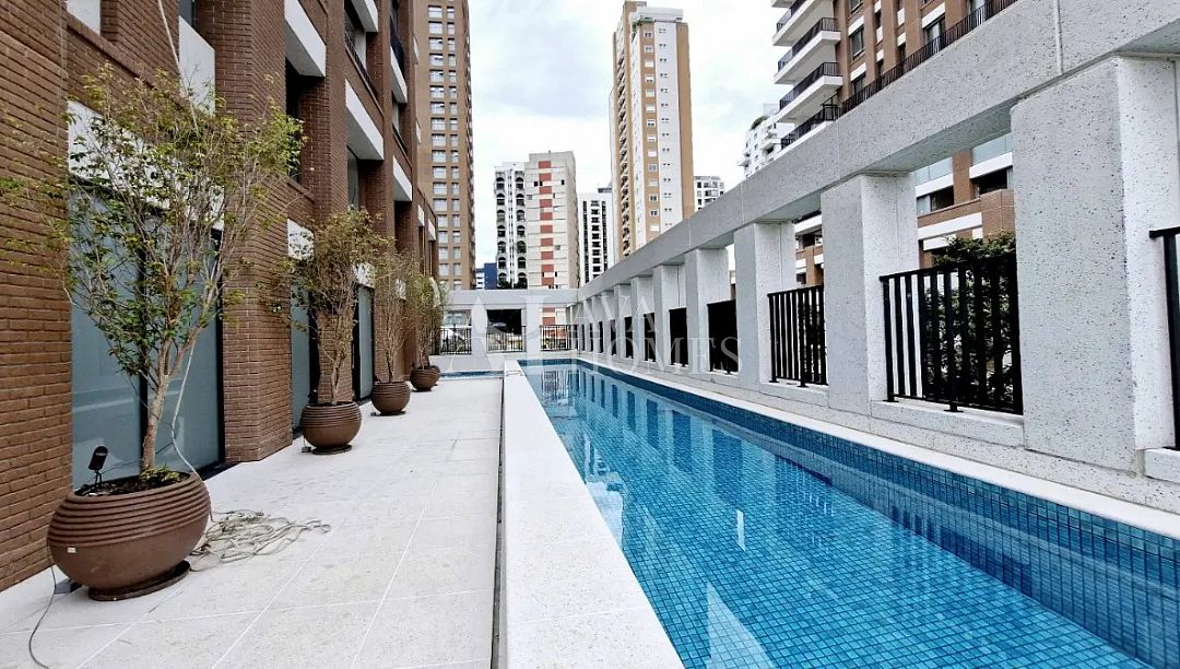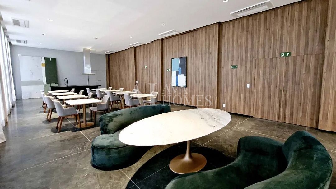 Comprometido com a sustentabilidade, o condomínio possui medidores individuais de água e gás, dispositivos economizadores de água nos banheiros e lavabos, e um sistema de reaproveitamento de água pluvial para irrigação dos jardins e limpeza das áreas comuns. Há também um ponto de alimentação para carros elétricos e uma vaga de bicicleta por unidade, incentivando o uso de transportes sustentáveis. As áreas comuns são igualmente impressionantes, com piscinas tratadas por um sistema conjugado de ozônio e cloro, garantindo água de qualidade superior. Um gerador de energia atende todas as áreas comuns, assegurando funcionamento contínuo. A segurança é prioridade, com uma guarita blindada e um projeto de segurança de alto padrão. Os moradores podem desfrutar de um salão de festas, academia e áreas de lazer completas, todas entregues equipadas e decoradas. A infraestrutura para Wi-Fi nas áreas comuns mantém todos conectados, e os elevadores sociais possuem acabamentos diferenciados que refletem sofisticação. Localizado no Itaim Bibi, um dos bairros mais desejados de São Paulo, o apartamento oferece fácil acesso às melhores opções de gastronomia, lazer e serviços da cidade.