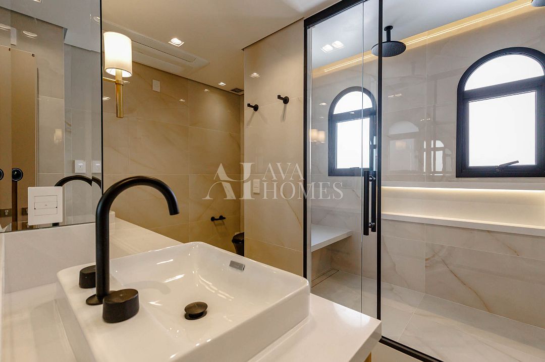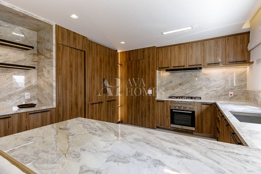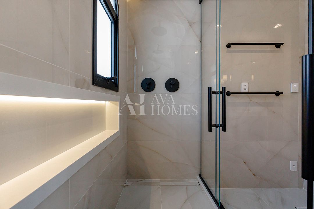 Com 270m², 3 suítes, Home office, sala de TV, copa, lavabo.
