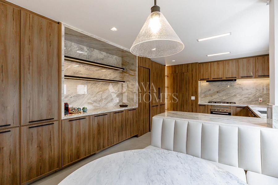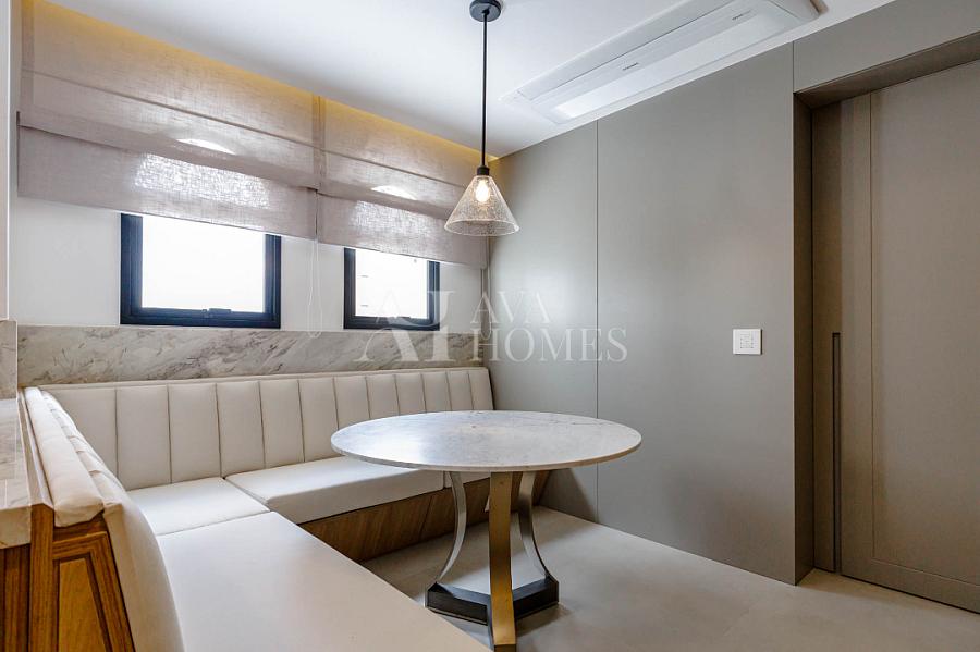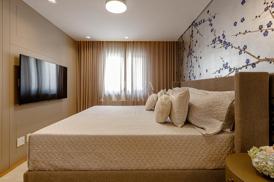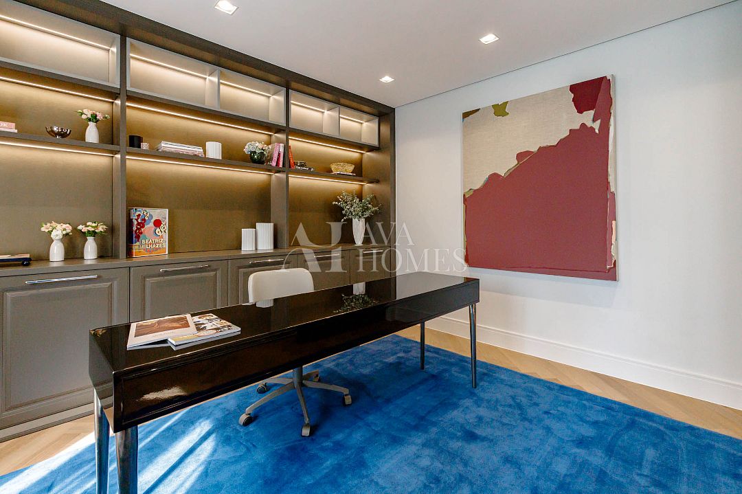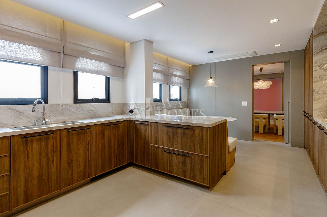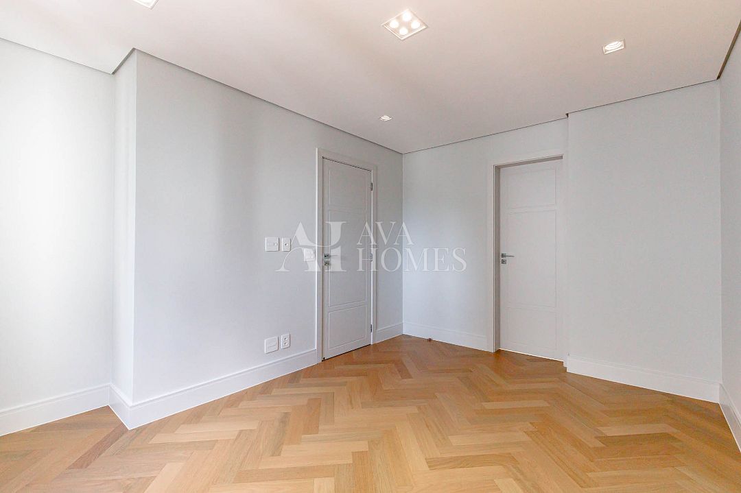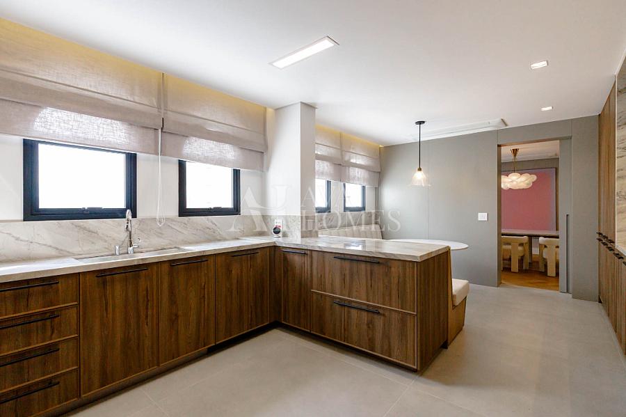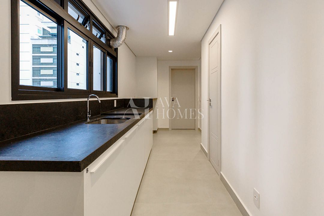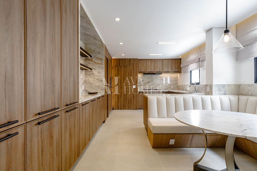 Marcenaria customizada sob medida em todos os cômodos. Portas blindadas nas entradas social e serviço.