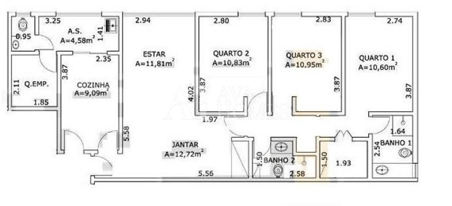 • 105m² - 3 dormitórios sendo 1 suíte – 3 banheiros