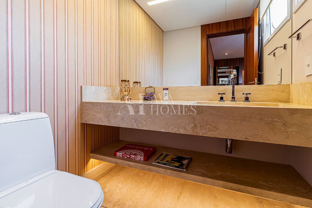 Aqui vai o menu de luxos: lareira ecológica a biofluido, ar-condicionado central, marcenaria em carvalho claro e escuro (aquele toque artesanal chique) e automação completa ? luzes, cortinas, som, home theater, até abrir a porta vai parecer cena de filme futurista.