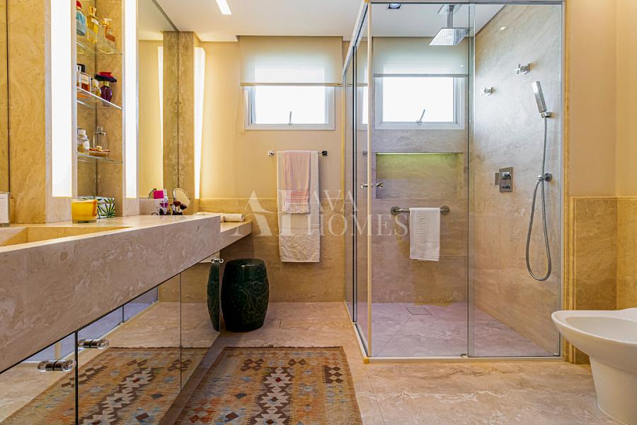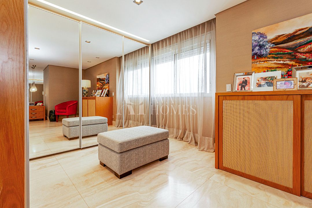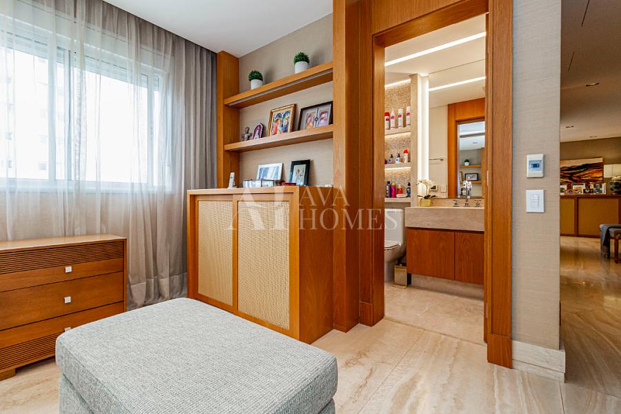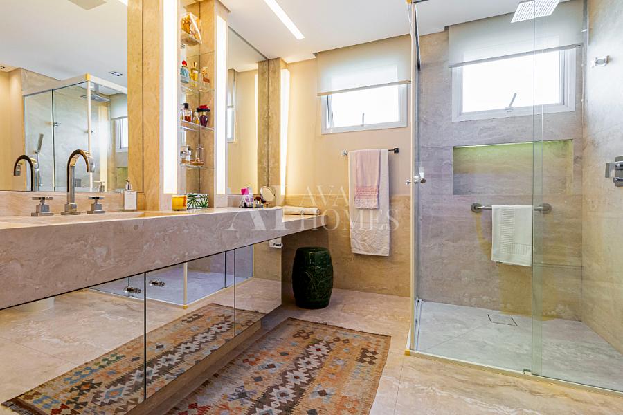 A suíte master é praticamente um spa particular: dois closets, dois banheiros independentes (adeus brigas por espaço!), piso aquecido e todo o conforto que você nem sabia que precisava até experimentar.