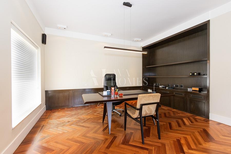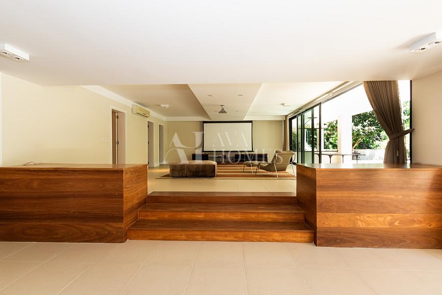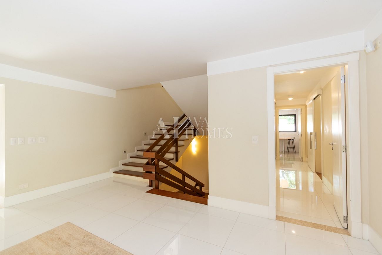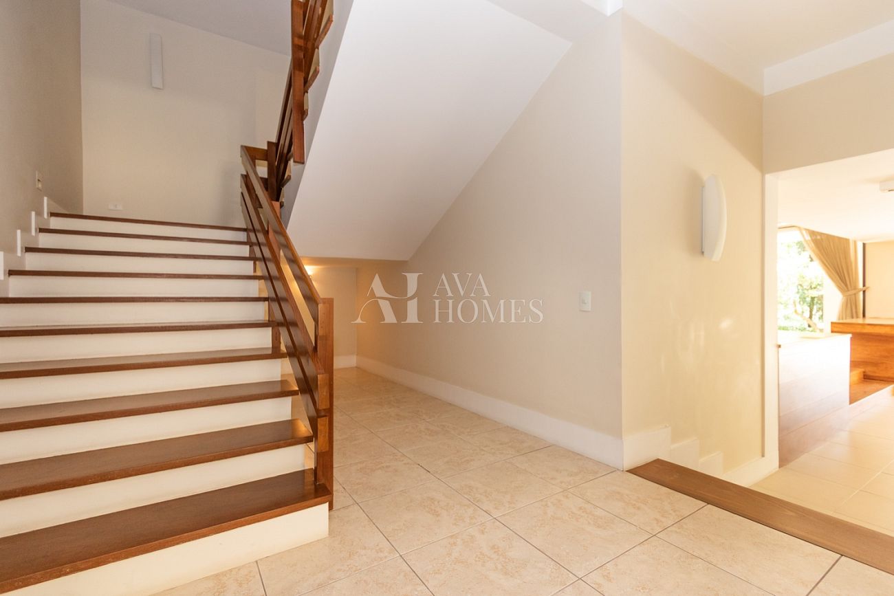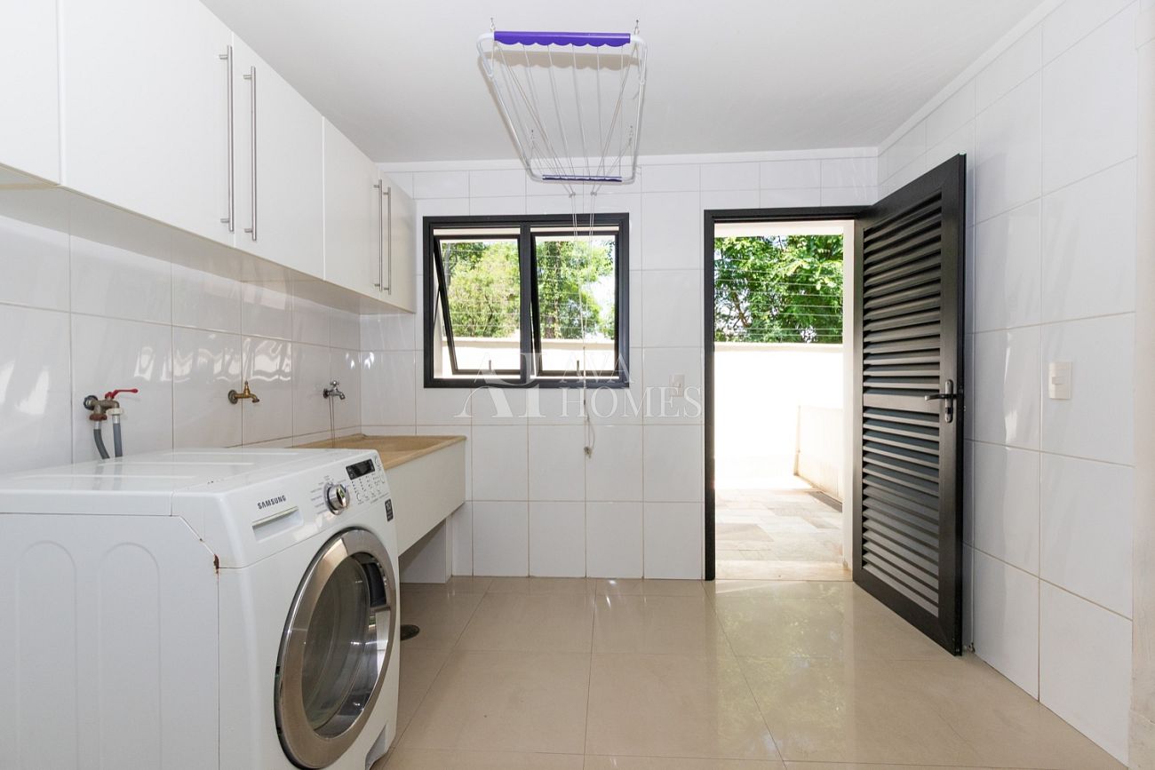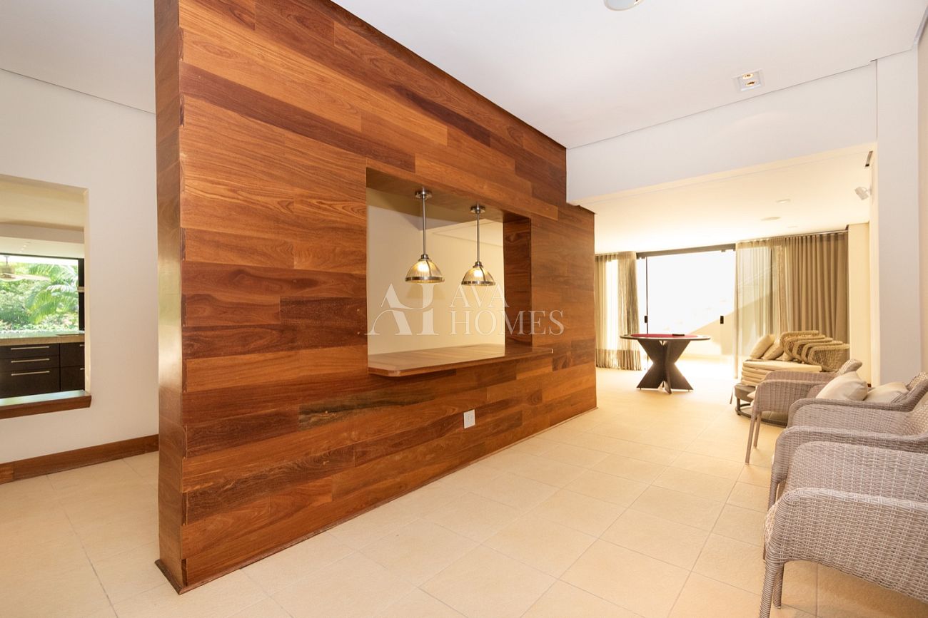 A parte funcional também impressiona. Há uma cozinha espaçosa, despensa, área de serviço, vestiário para diaristas, armários embutidos, piso de madeira nas áreas sociais e piso frio nas áreas de apoio. A casa conta com lareira, ar condicionado, sistema de alarme e todos os recursos necessários para receber bem e viver com conforto absoluto.