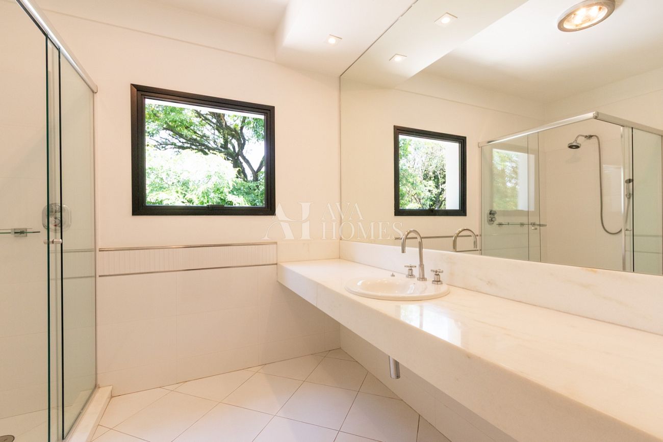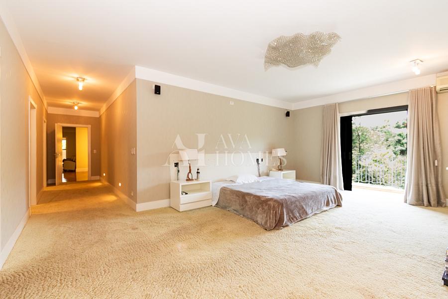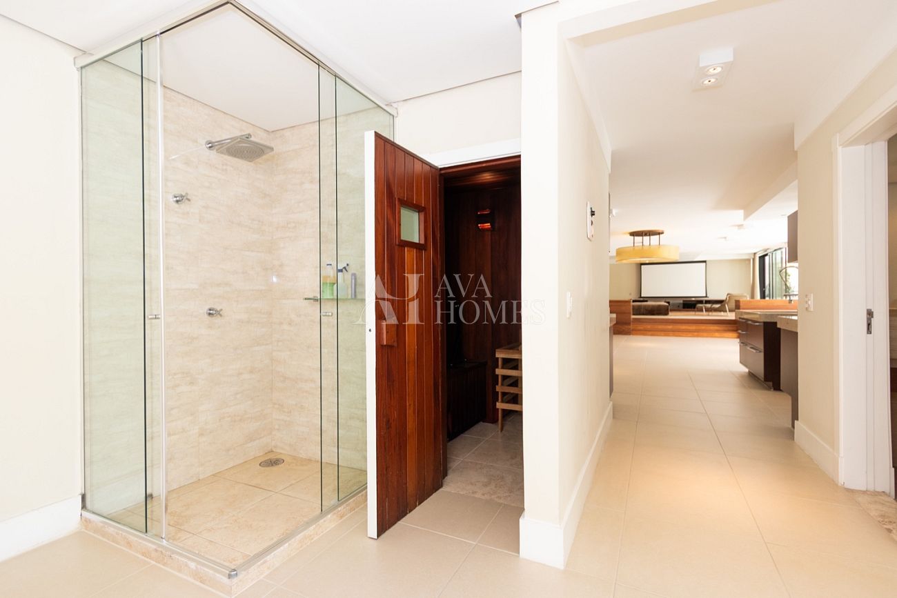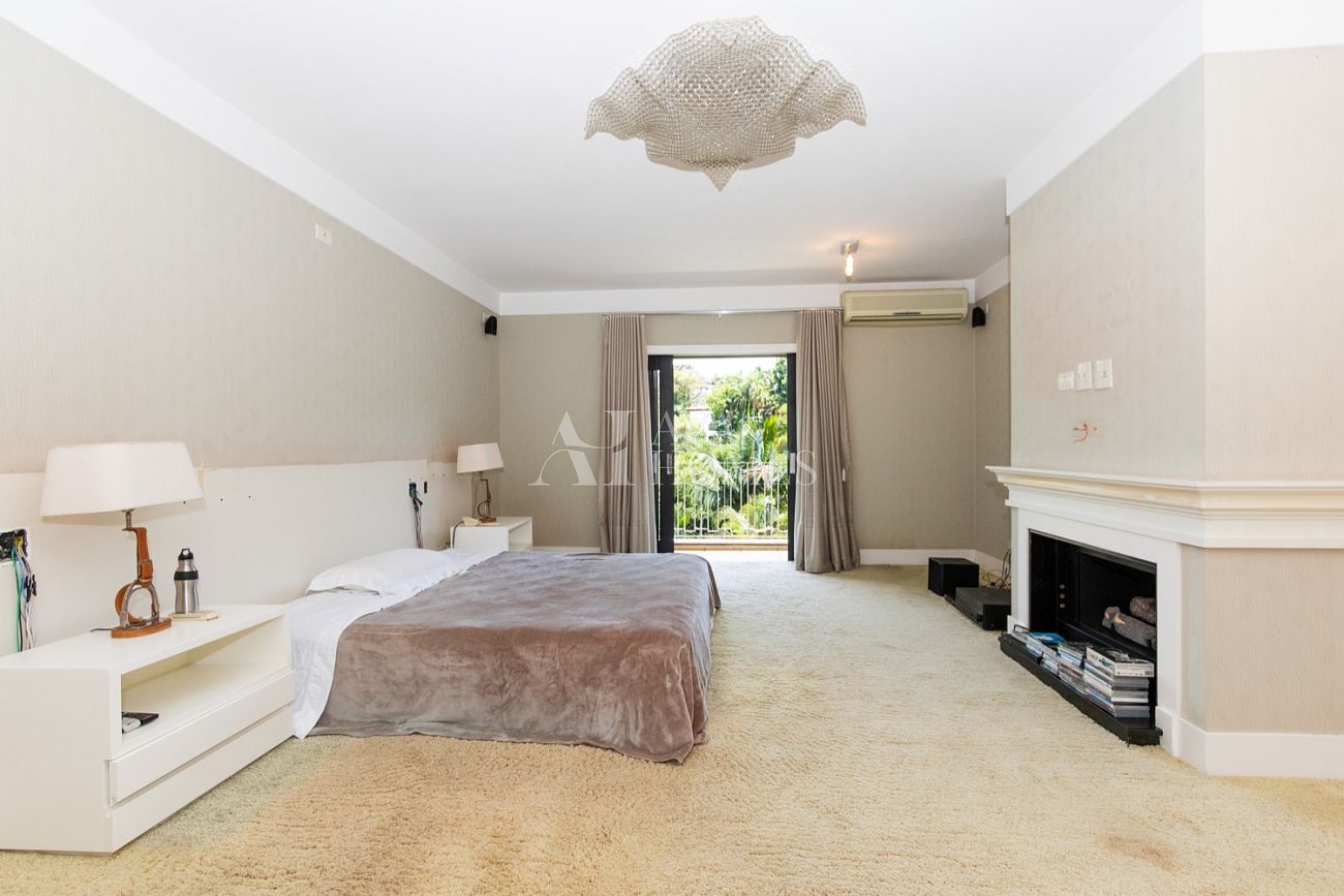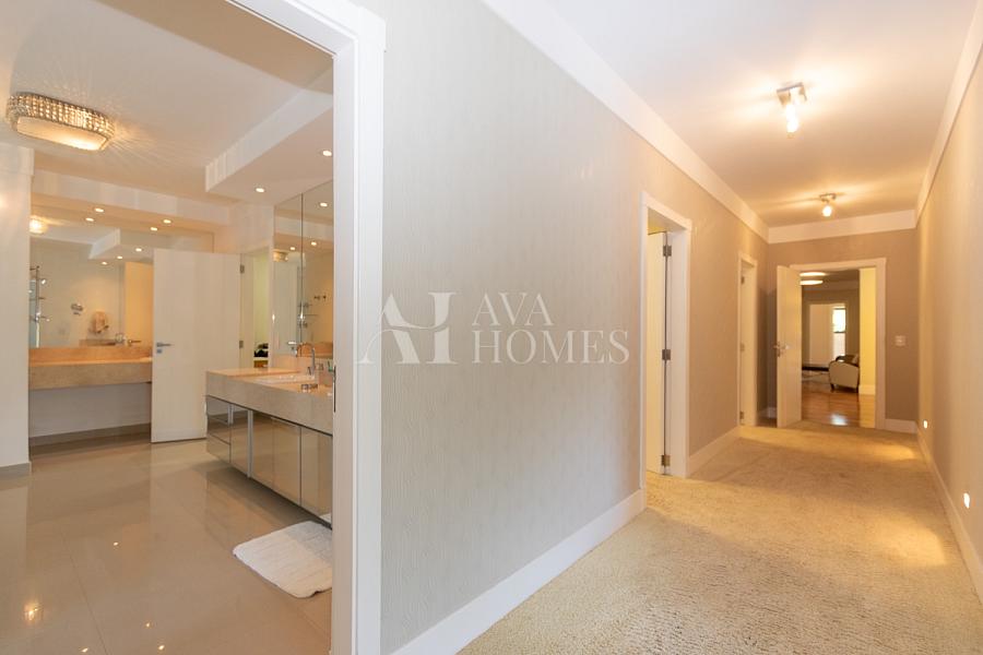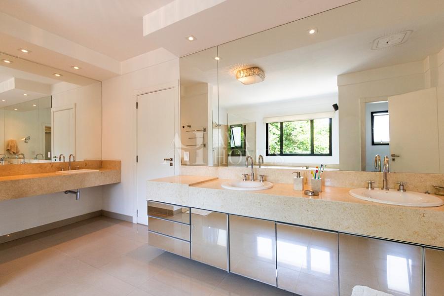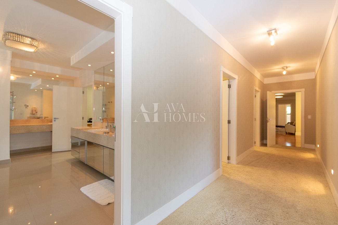 A área íntima conta com 4 suítes generosas. A suíte master é um capítulo à parte, com antessala, closet e banheiro duplo para Sr e Sra. A casa somada possui 4 quartos no total e 10 banheiros. A circulação é confortável e bem planejada, garantindo privacidade e fluidez.