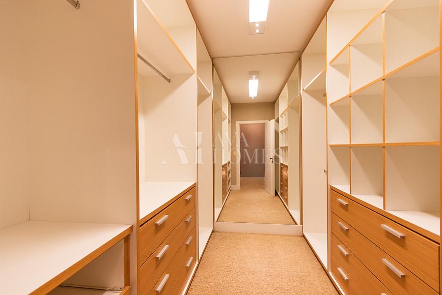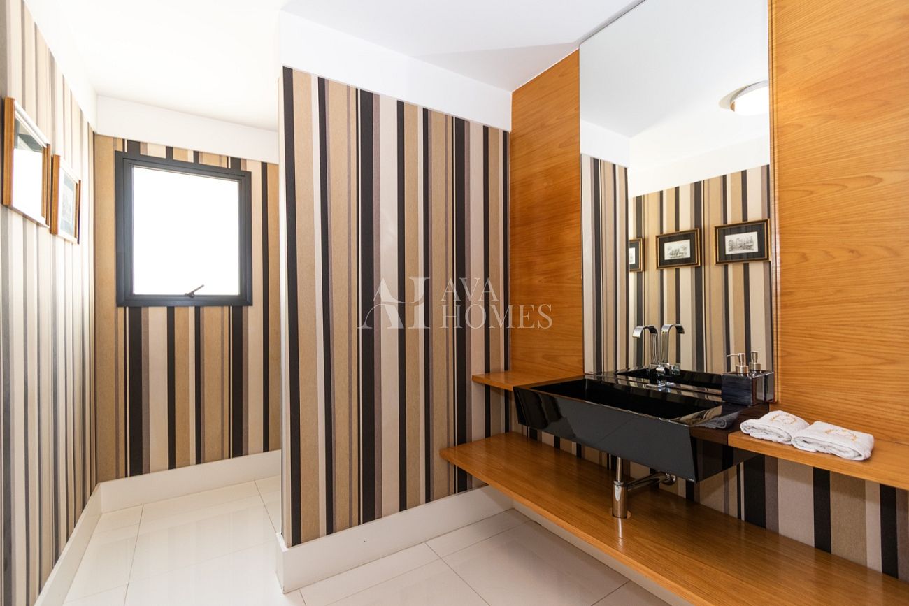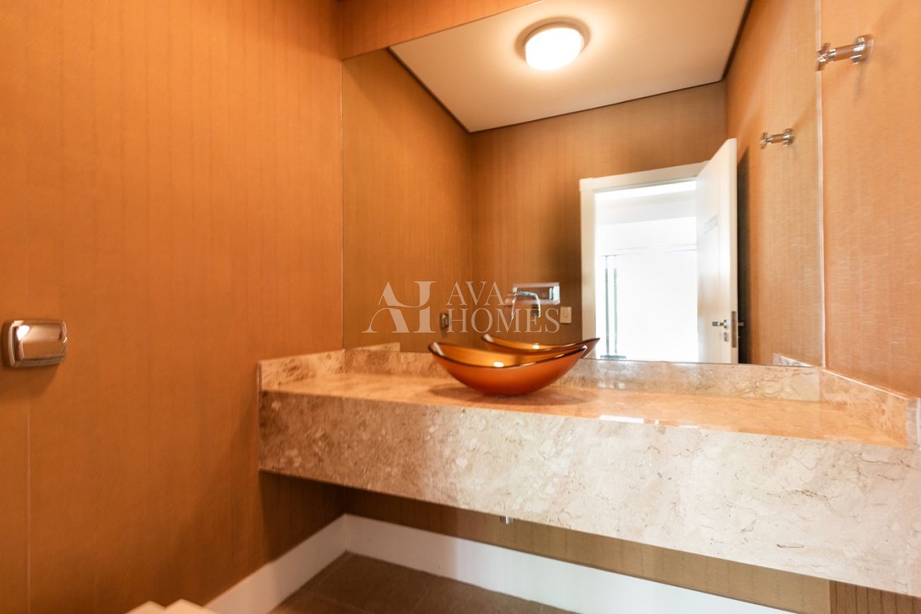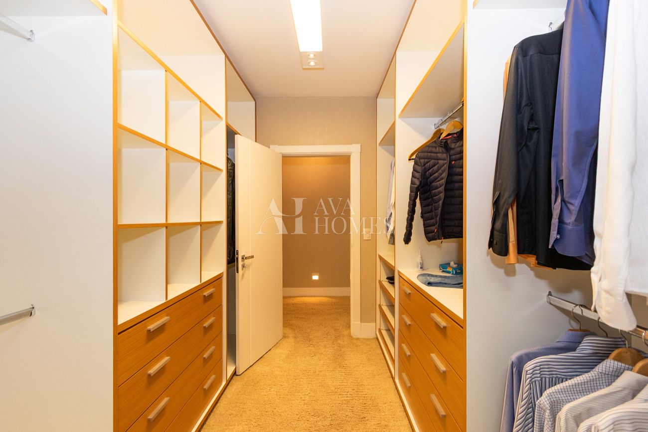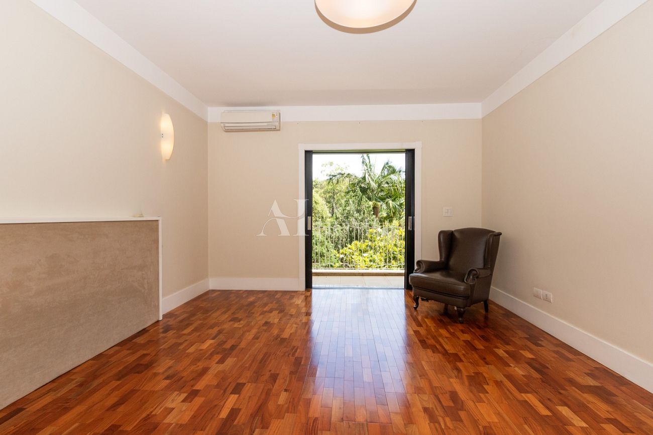 A área íntima conta com 4 suítes generosas. A suíte master é um capítulo à parte, com antessala, closet e banheiro duplo para Sr e Sra. A casa somada possui 4 quartos no total e 10 banheiros. A circulação é confortável e bem planejada, garantindo privacidade e fluidez.