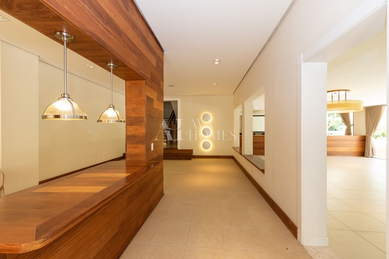 Logo na entrada você já percebe a imponência da casa. Os ambientes sociais são amplos, recebem muita luz natural e se integram completamente ao terraço e ao jardim. Tudo foi pensado para criar uma atmosfera de aconchego e sofisticação. As salas se abrem para a varanda com vista para a piscina e para o paisagismo que transforma o espaço externo em um cenário agradável todos os dias do ano.