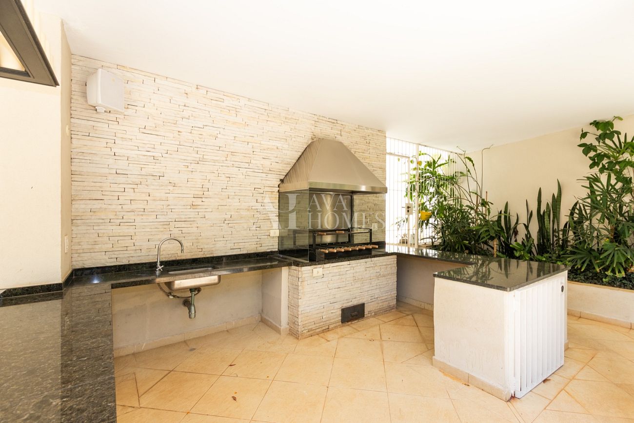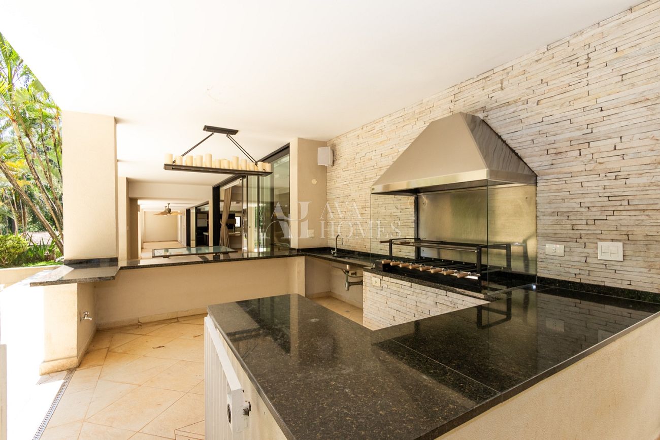 No lazer, o destaque é a piscina rodeada por um jardim maduro e muito bem cuidado. O espaço gourmet com churrasqueira faz dessa casa um lugar perfeito para reunir amigos e família com elegância. A garagem comporta até 9 veículos com facilidade.