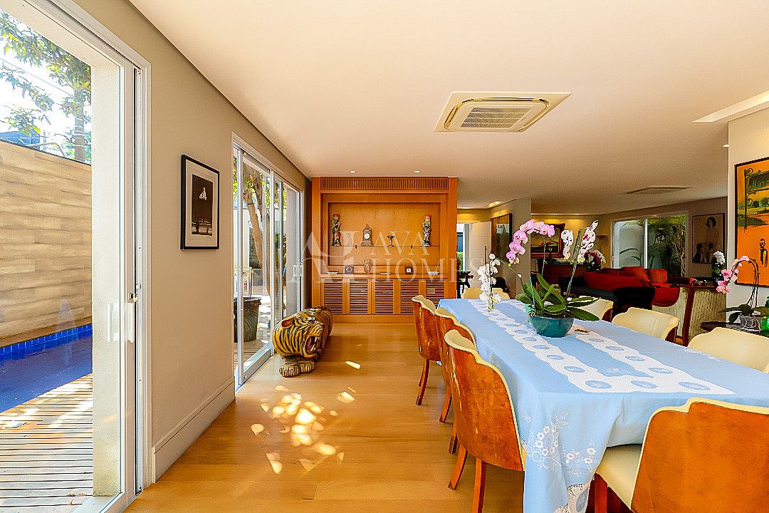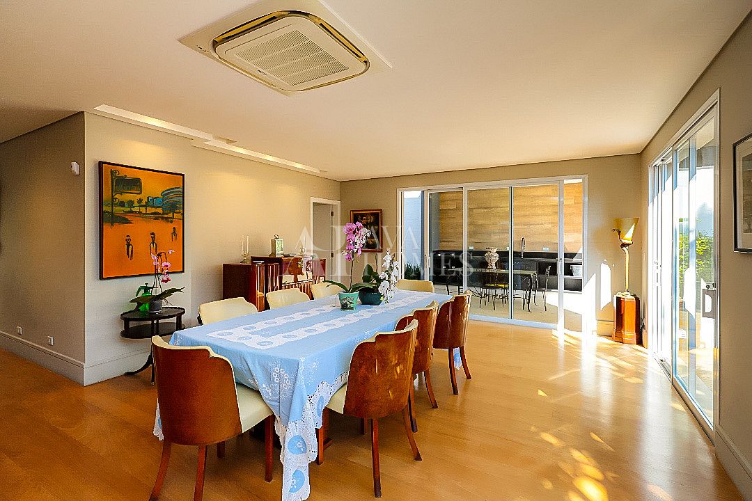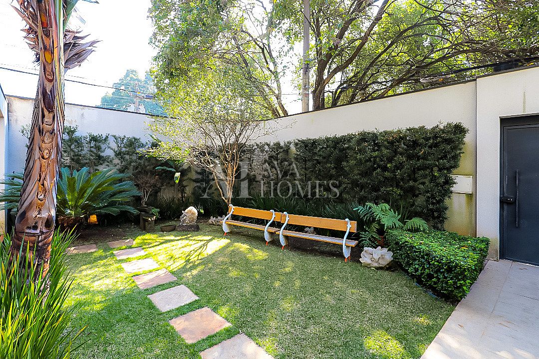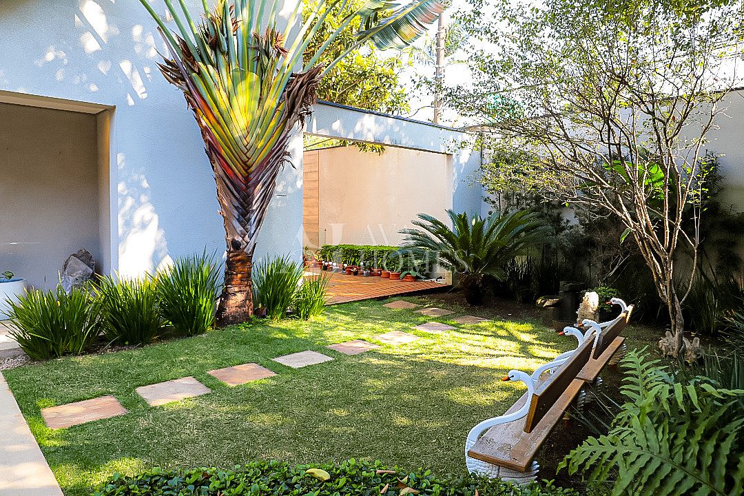 Com 430m² de área construída, a área social é toda envidraçada, com vista para um jardim incrível, piscina e um espaço gourmet de dar água na boca. Os ambientes integrados trazem praticidade e estilo de sobra.
