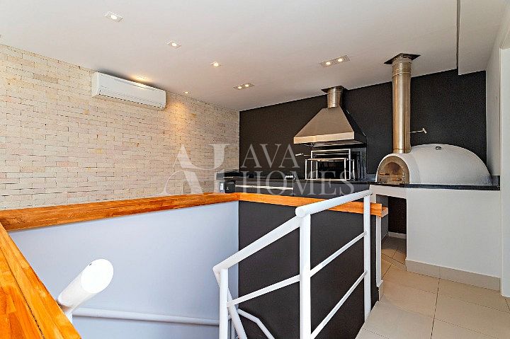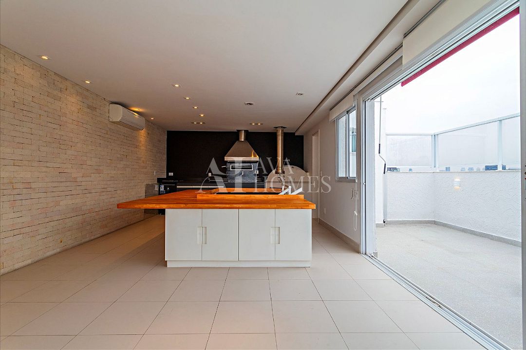 Esta cobertura está estrategicamente localizada a apenas 10 minutos a pé do cruzamento entre Faria Lima e a JK. Ideal para quem deseja ir trabalhar a pé, o imóvel oferece uma planta inteligente e bem distribuída. No primeiro pavimento, uma cozinha integrada se conecta a uma ampla sala destinada à televisão e jantar. No segundo andar, duas suítes, uma menor e outra mais ampla, com closet e espaço para home office. No último pavimento, a área de lazer dispõe de churrasqueira, forno de pizza, um banheiro para convidados e um amplo espaço para tomar sol ou, se preferir, instalar uma jacuzzi.