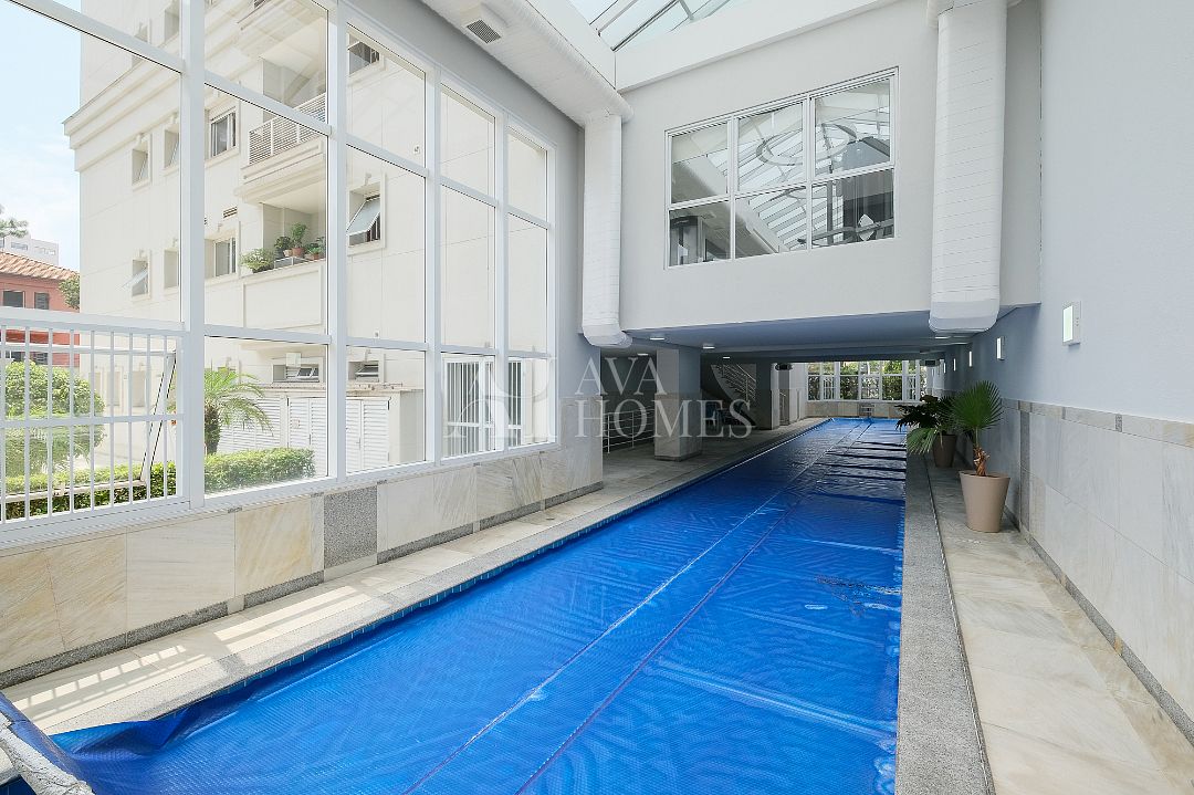 O edifício também oferece uma academia completa no mezanino, permitindo que você se exercite sem sair de casa. Além disso, você poderá desfrutar de momentos de relaxamento na piscina com raia aquecida, complementando o estilo de vida sofisticado e saudável que essa cobertura oferece.