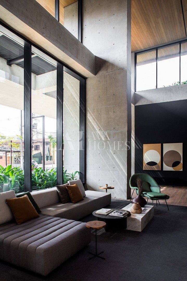 No térreo há um café e uma praça aberta ao público, inspirada nos Pocket Parks de Nova Iorque.