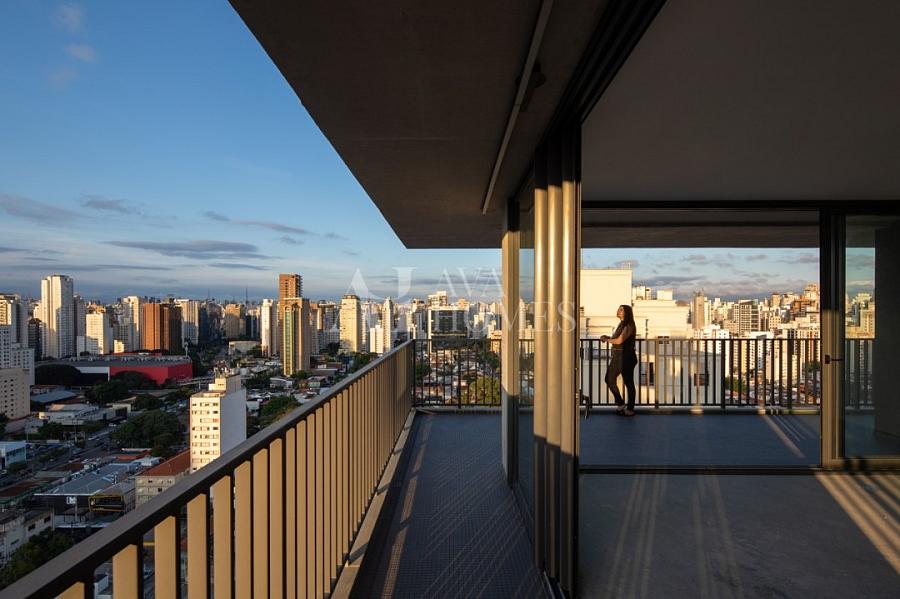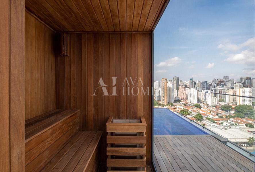 Área de lazer completa com quadra de squash e lavanderia comunitária, deck e jardim, sala de jogos, horta comunitária, sala de ginástica, salão de festas, piscina na cobertura raia de 23 metros com borda infinita, sauna e spa com vista panorâmica.