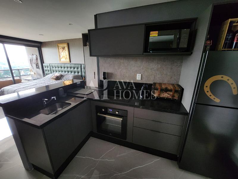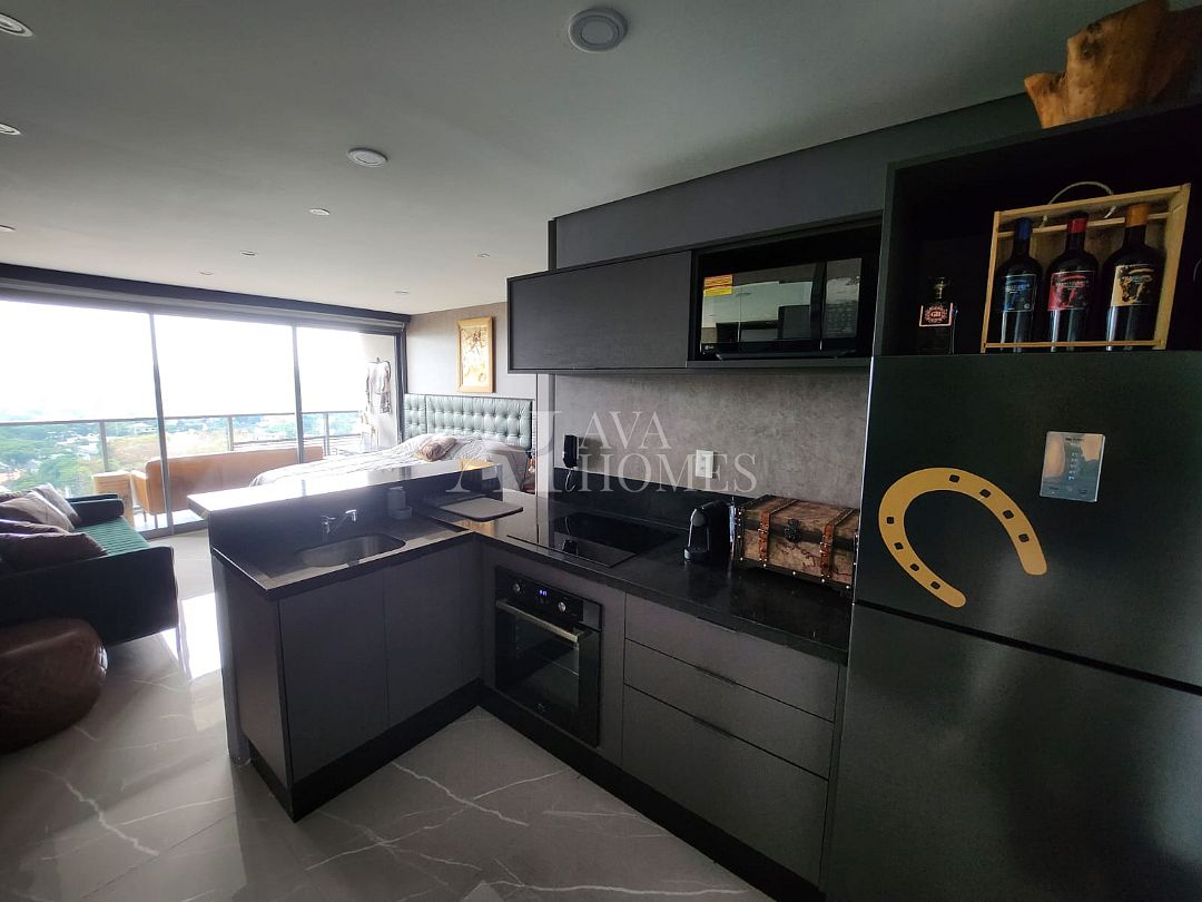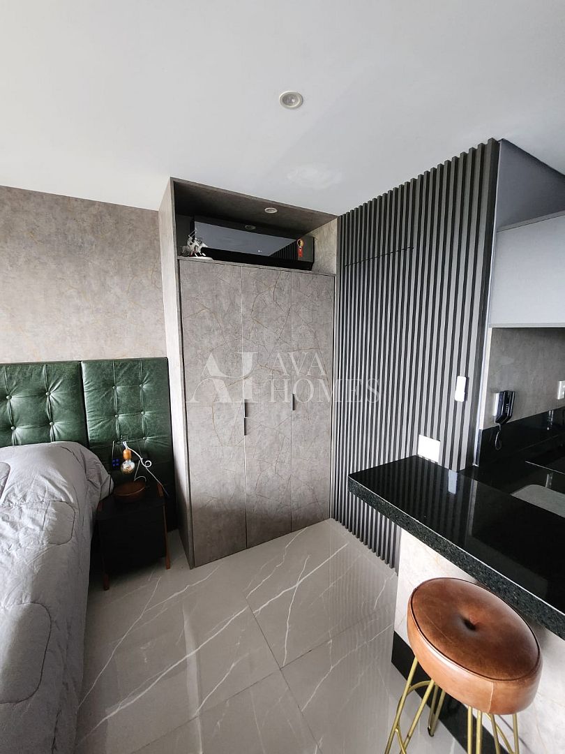 Encantador Studio de 38 m², com uma vaga de estacionamento, entregue completamente mobiliado e decorado para o seu conforto, pronto para morar. Conta com uma vista deslumbrante, a varanda é um charme e proporciona uma excelente iluminação natural. Este espaço tem a parte de marcenaria completa, garantindo praticidade e organização, além de estar equipado com ar condicionado para o seu conforto em todas as estações.